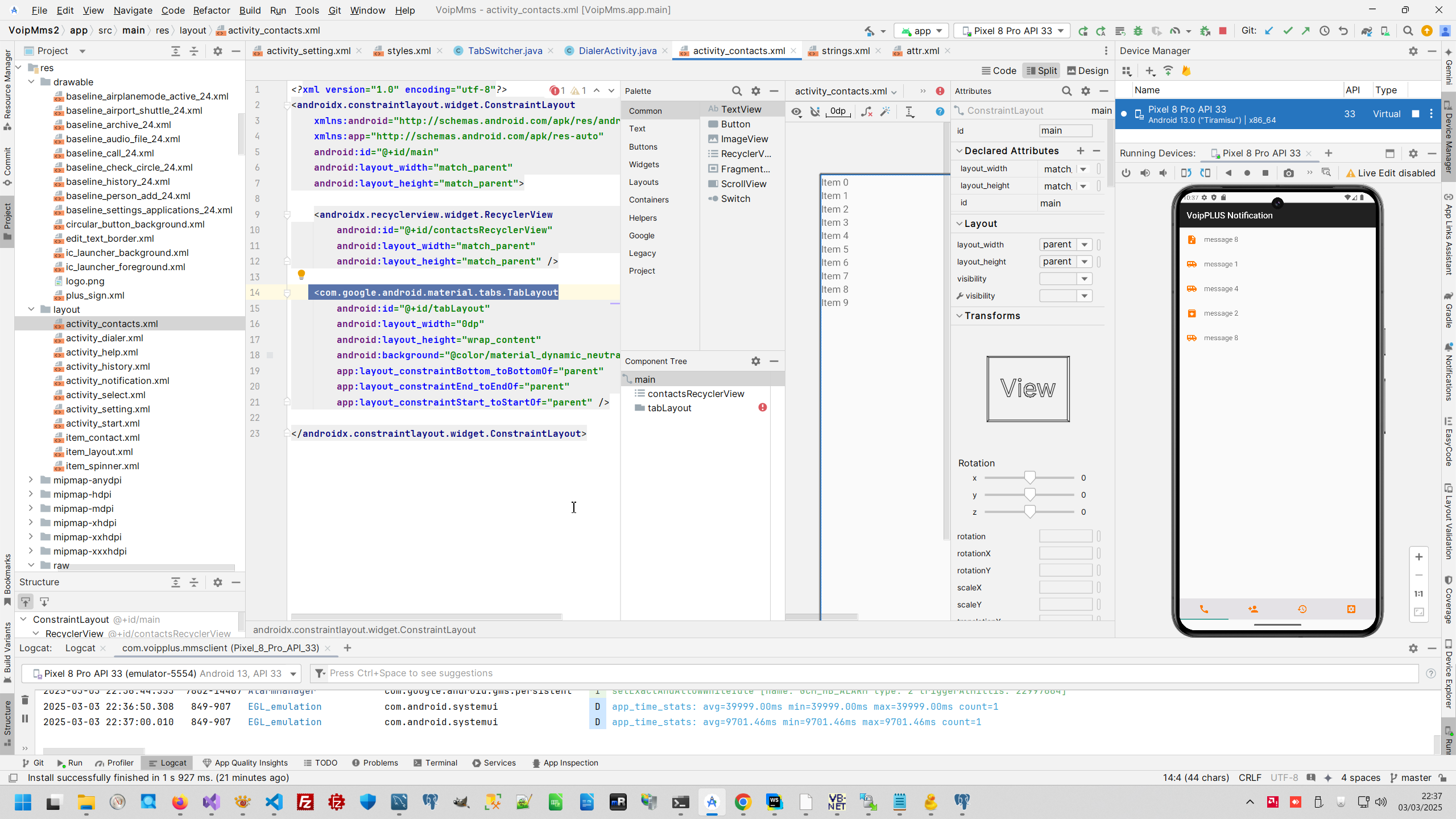 There are a lot of way to create TabSwitcher, more useful way is Fragment, but in current application I have selected another way, I have created own TabSwitcher class based on standard TabLayout class: