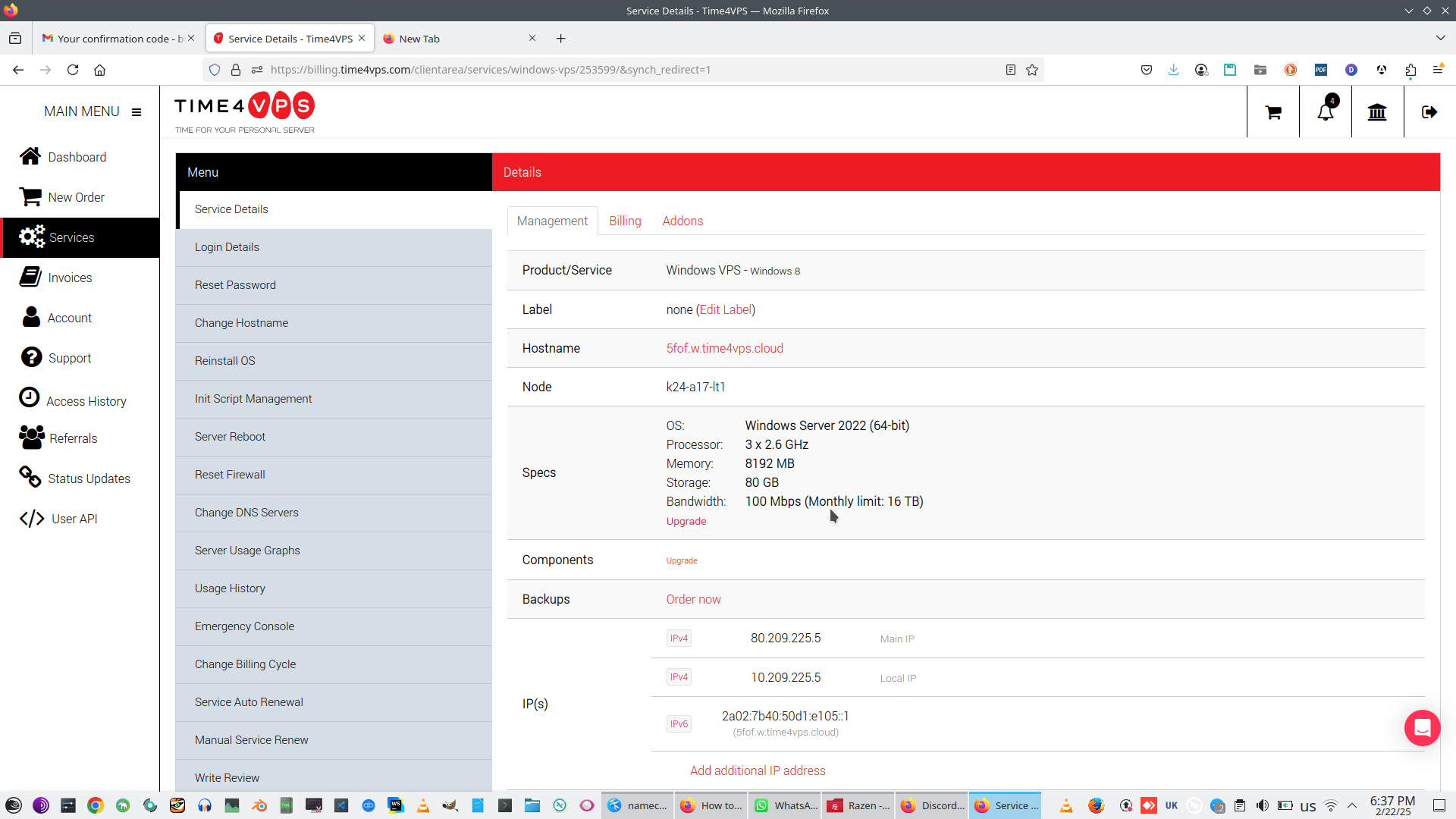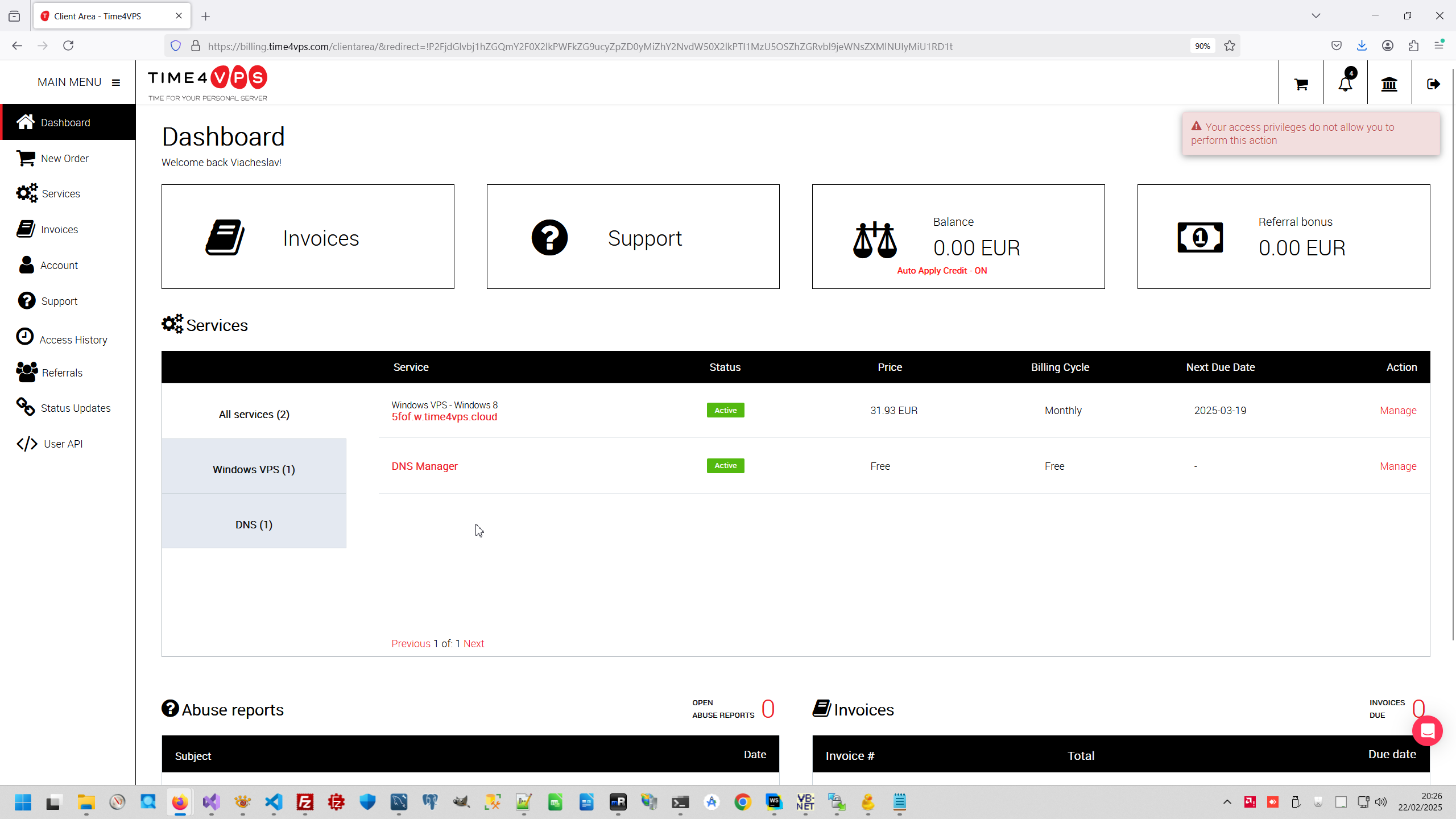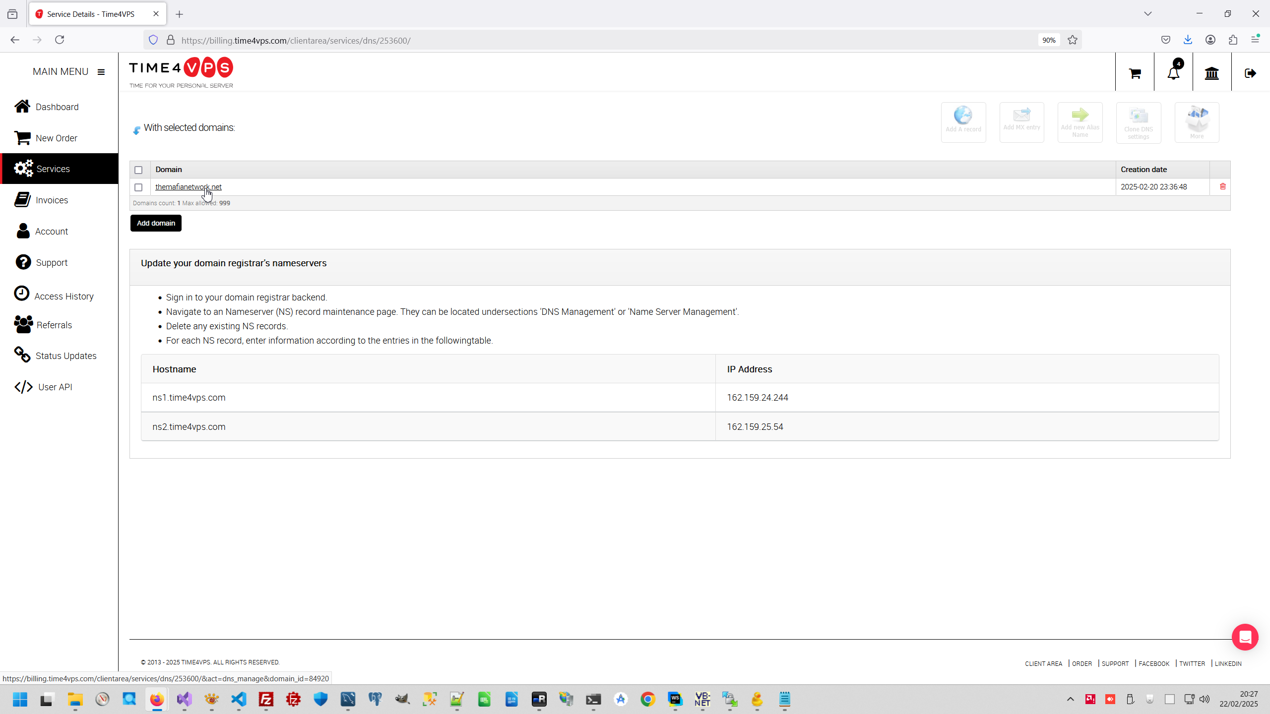 (9) Next step was a transfer domain to DNS user selected (https://www.time4vps.com/), select right server configuration and initialize VPS from scratch.