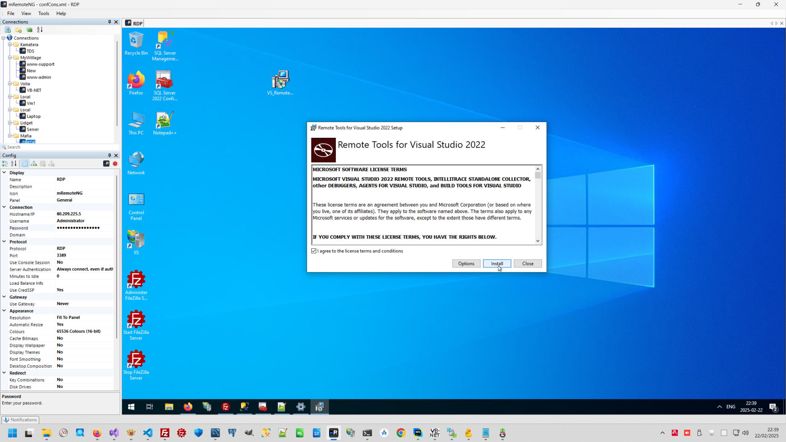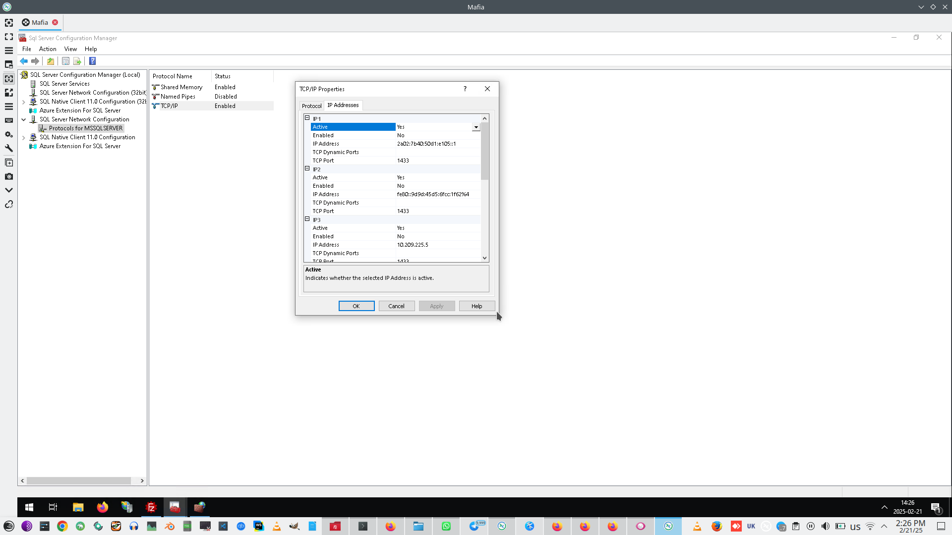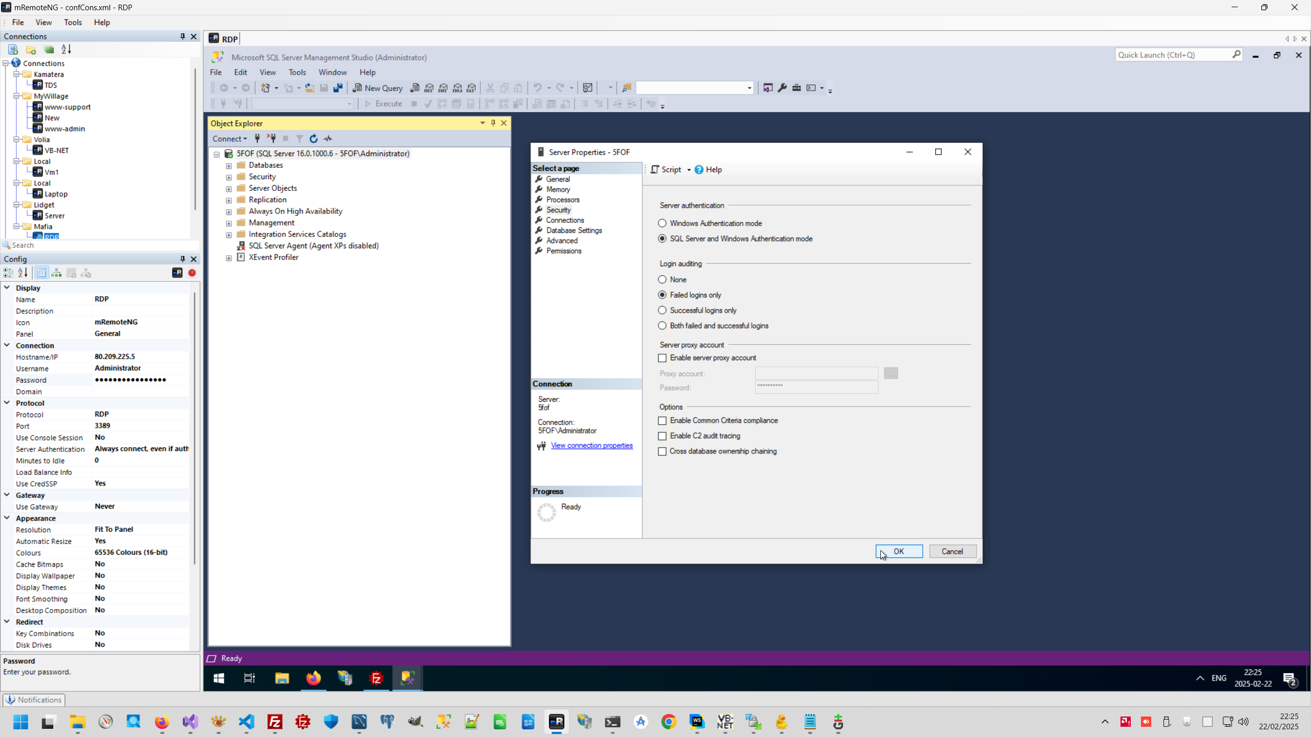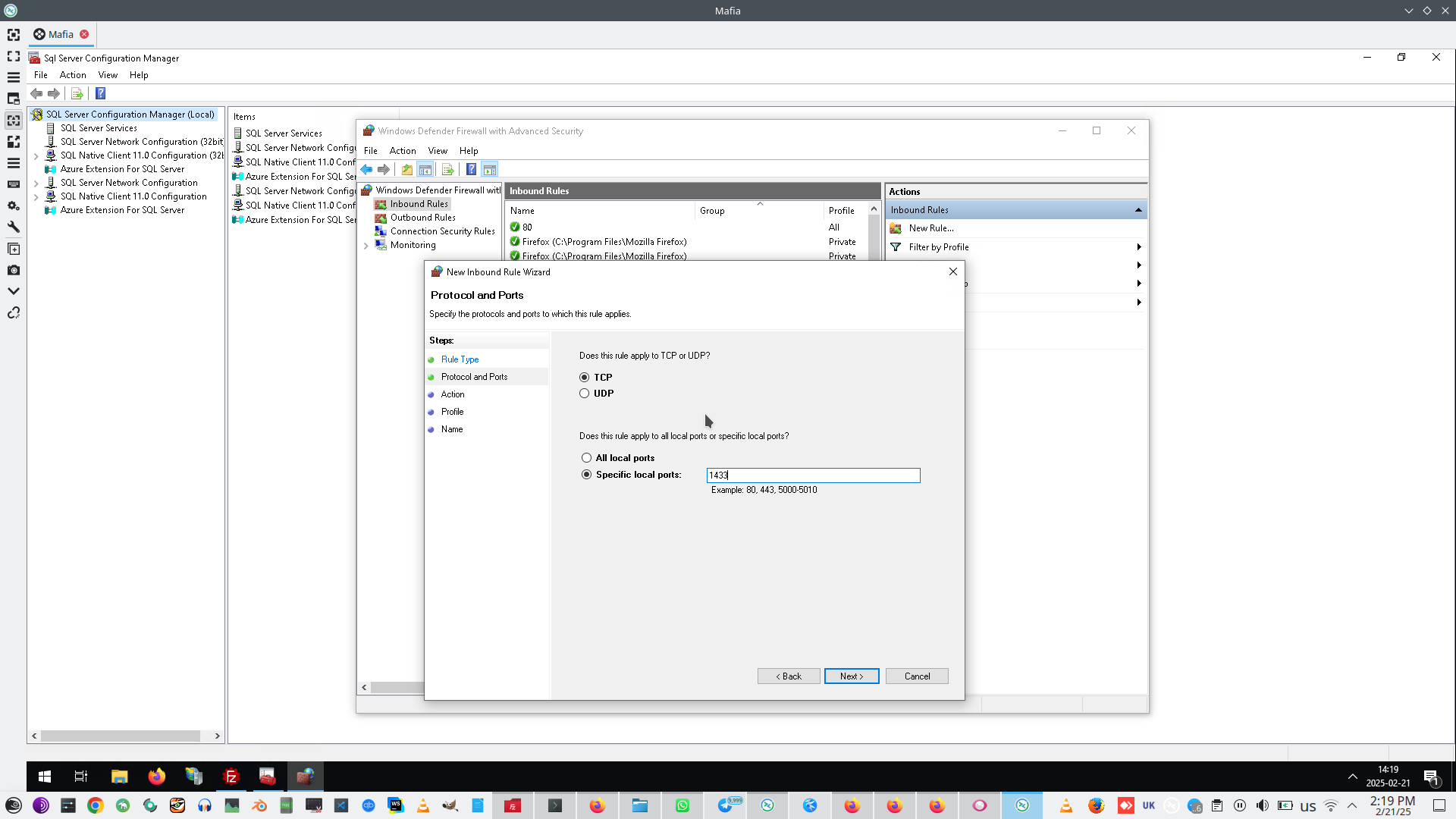 About configuring MS SQL server. Firstly, I have configured remote access (datacenter has Firewall in webPanel, therefor is full safe.