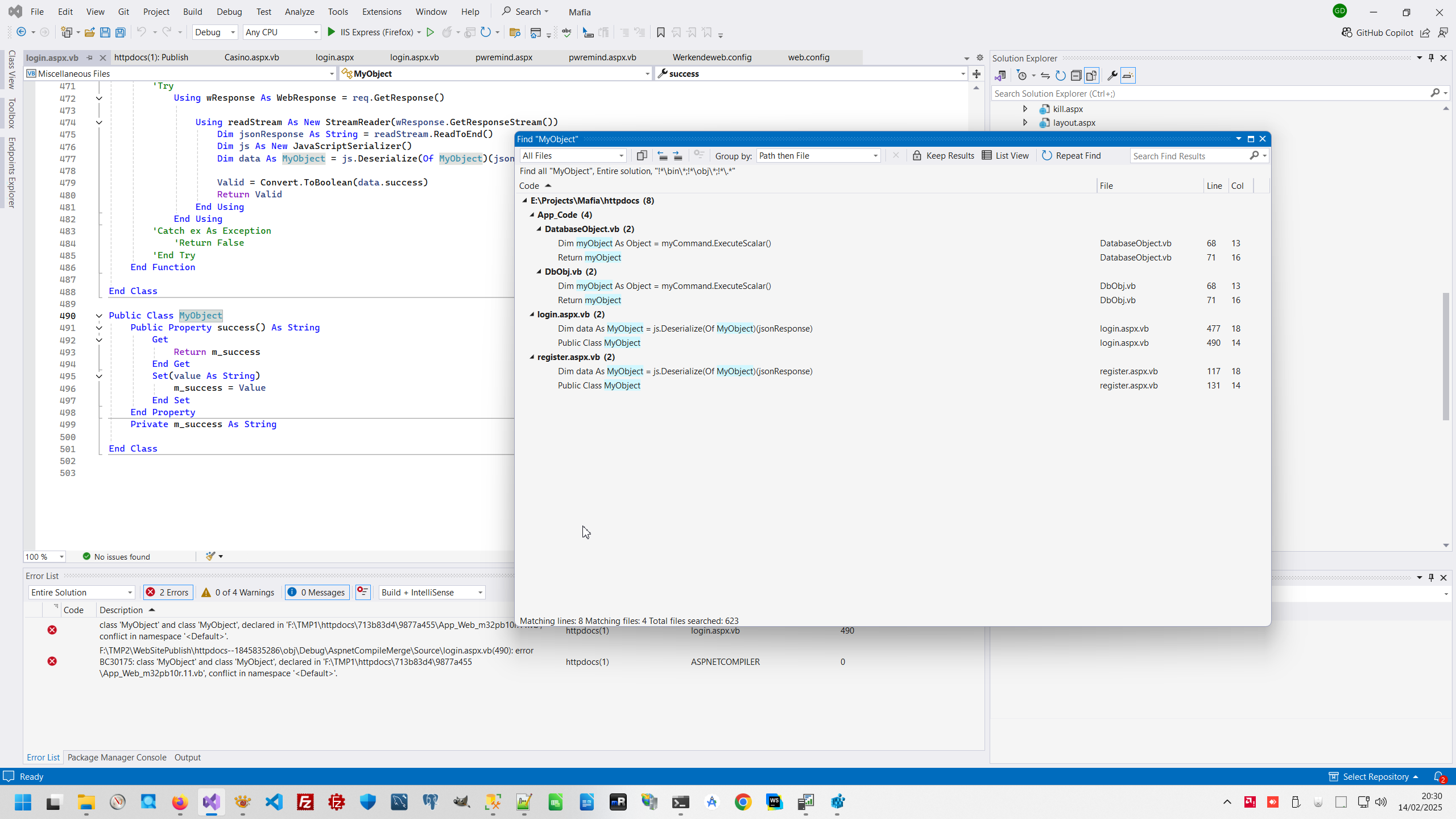 (1) Firstly project ha global troubles and can not compiled as ASP.NET project.