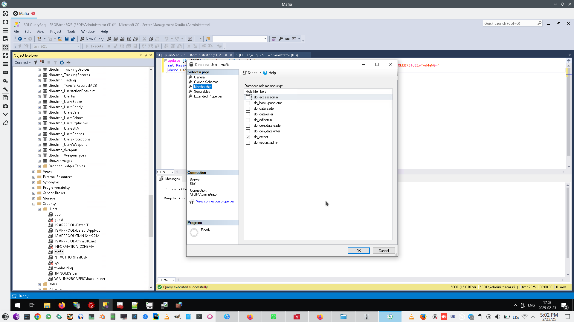 # ALTER SERVER ROLE sysadmin ADD MEMBER [5FOF\Administrator];