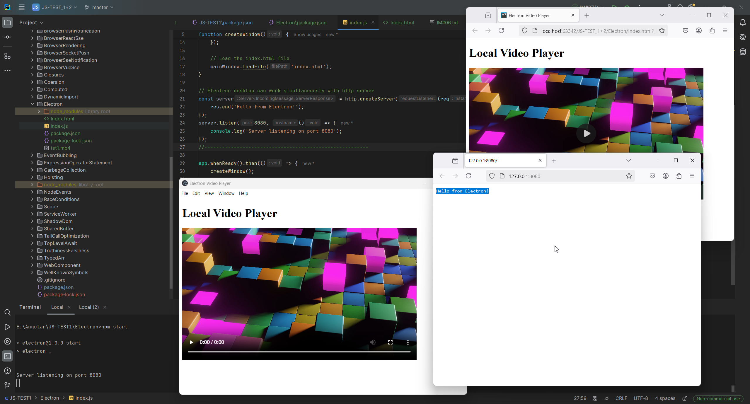 So, Webserver can working as external to Electron application process and we can watch HTML page in this Http server