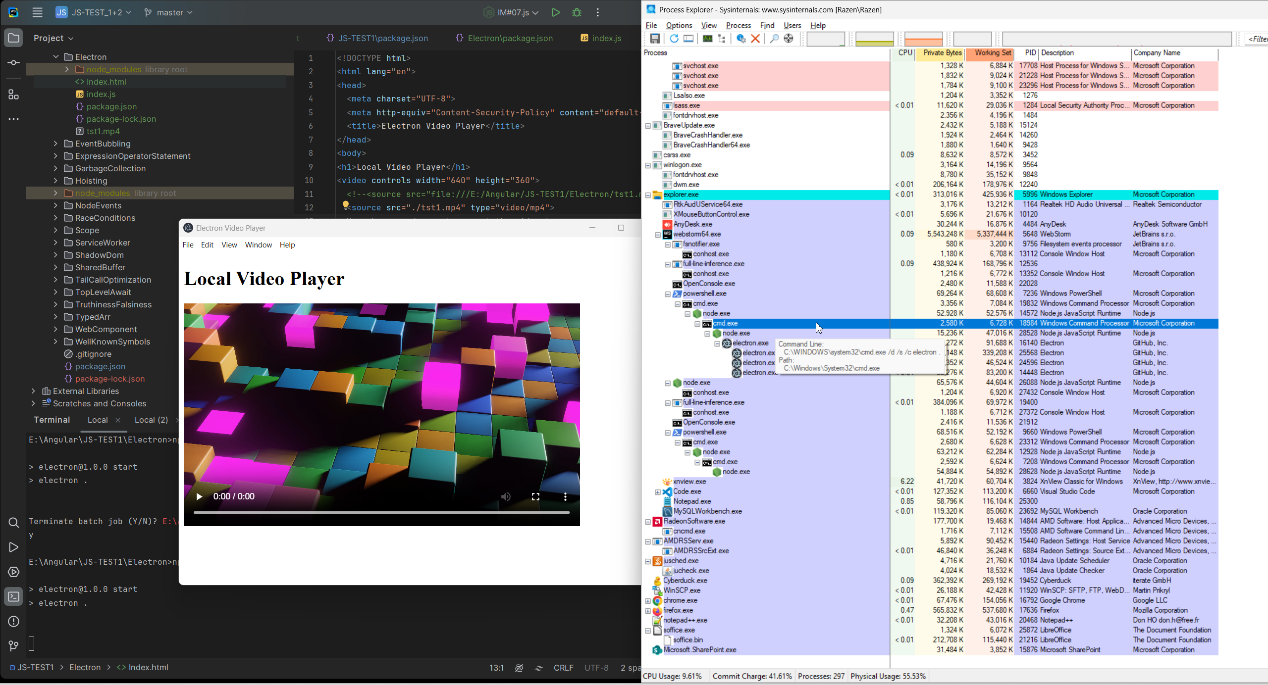 Sometimes this looking tricky because HTML page and Electron application working simultaneously and doing the doing the same job.