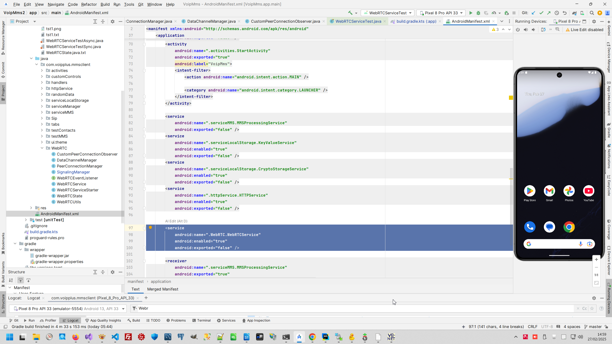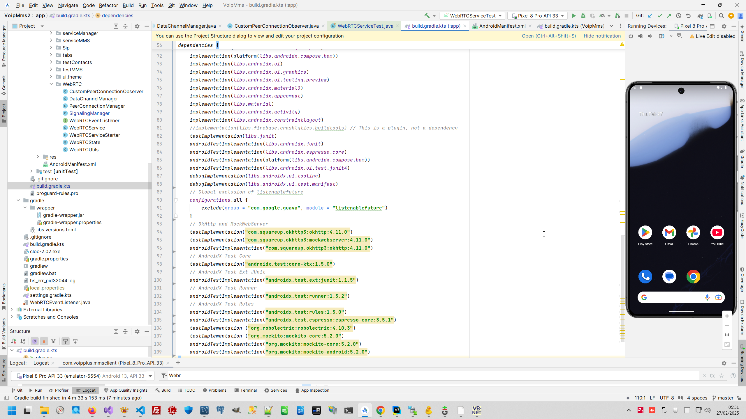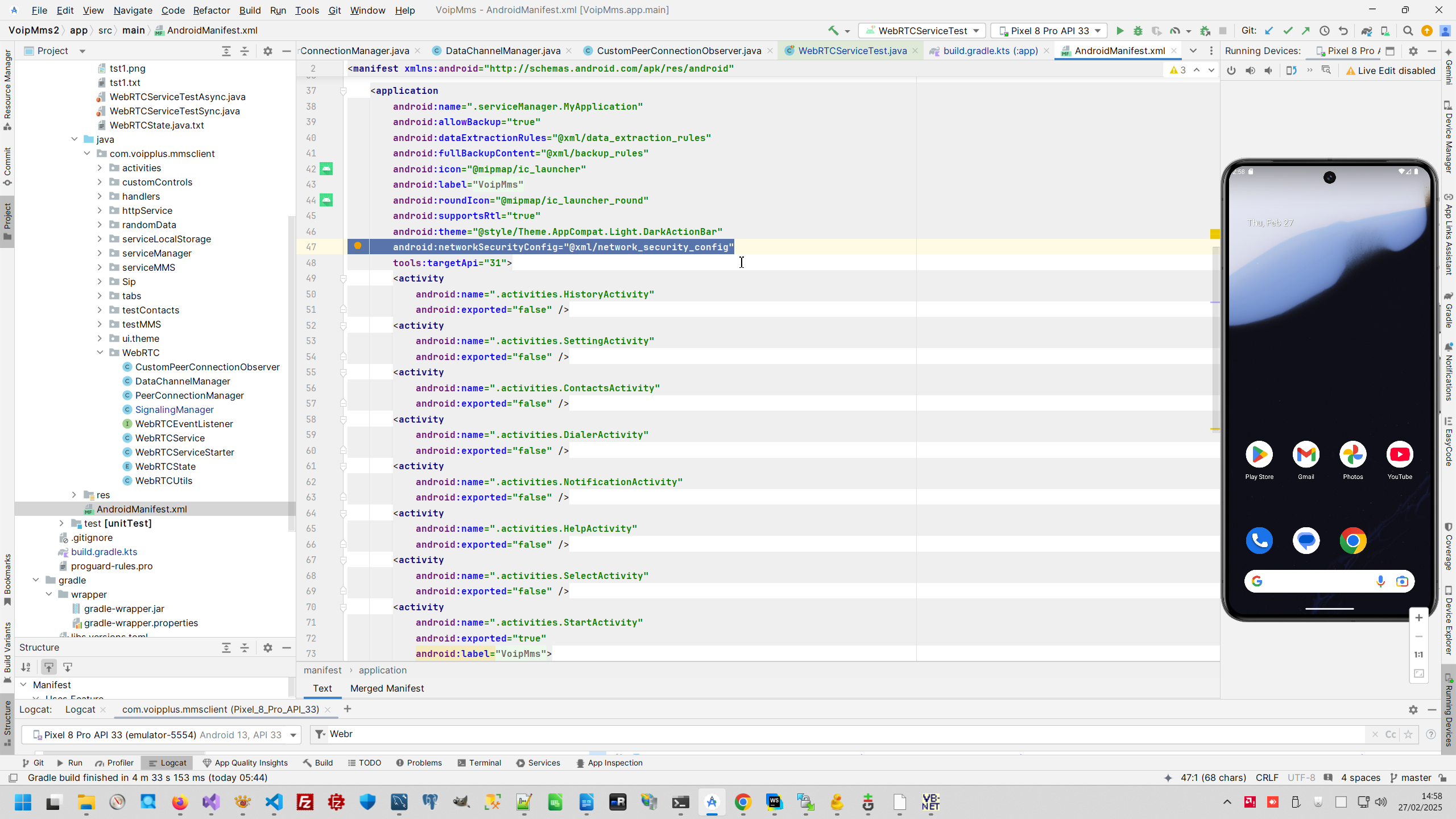 4. Prepare Android integration test (Gradle, Manifest, network security policy).