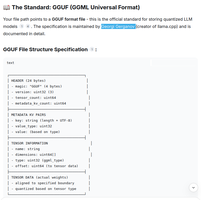 GPT-Generated Unified Format (GGUF) used for store vector matrix for most of LLM models (Ollama, llama.cpp, LM studio, GPT4, vLLM and other). This is C++ file format and can not easy reproduce in other languages (therefore for my own LLM model for Javascript I have developed my own file format Create custom LLM in special format (convenient to Javascript and Java) from A1/A2 Deutsch words and training my own custom AI model to books for Deutsch beginners.).