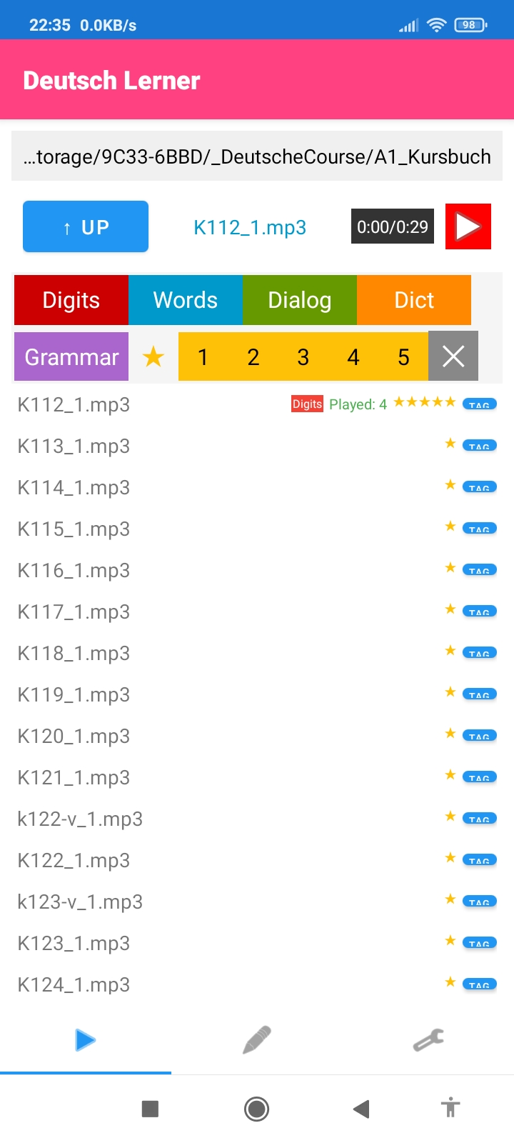 My new Android application for learning Deutsch (sound manager with persistent state plus AI tester based on my own special LLM matrix for beginners).