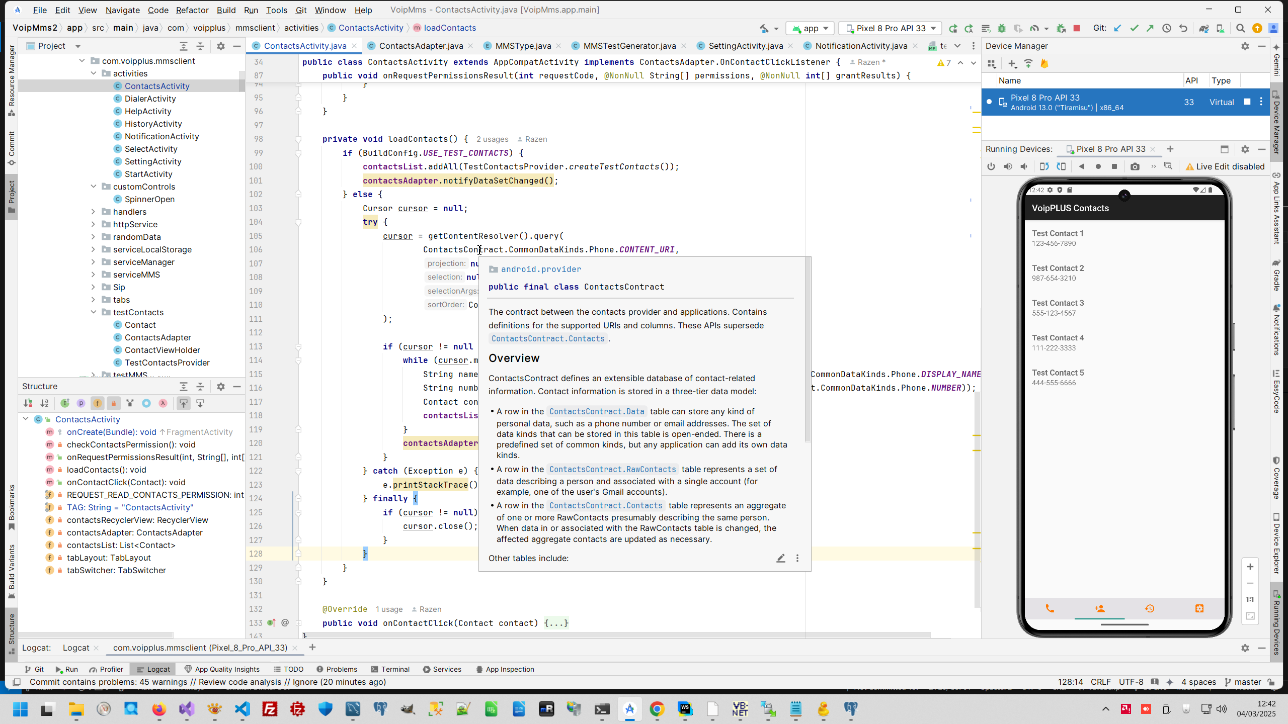 This is very similar to DAO access in .NET platform. I read data using moveToNext() and store data to Contact object.