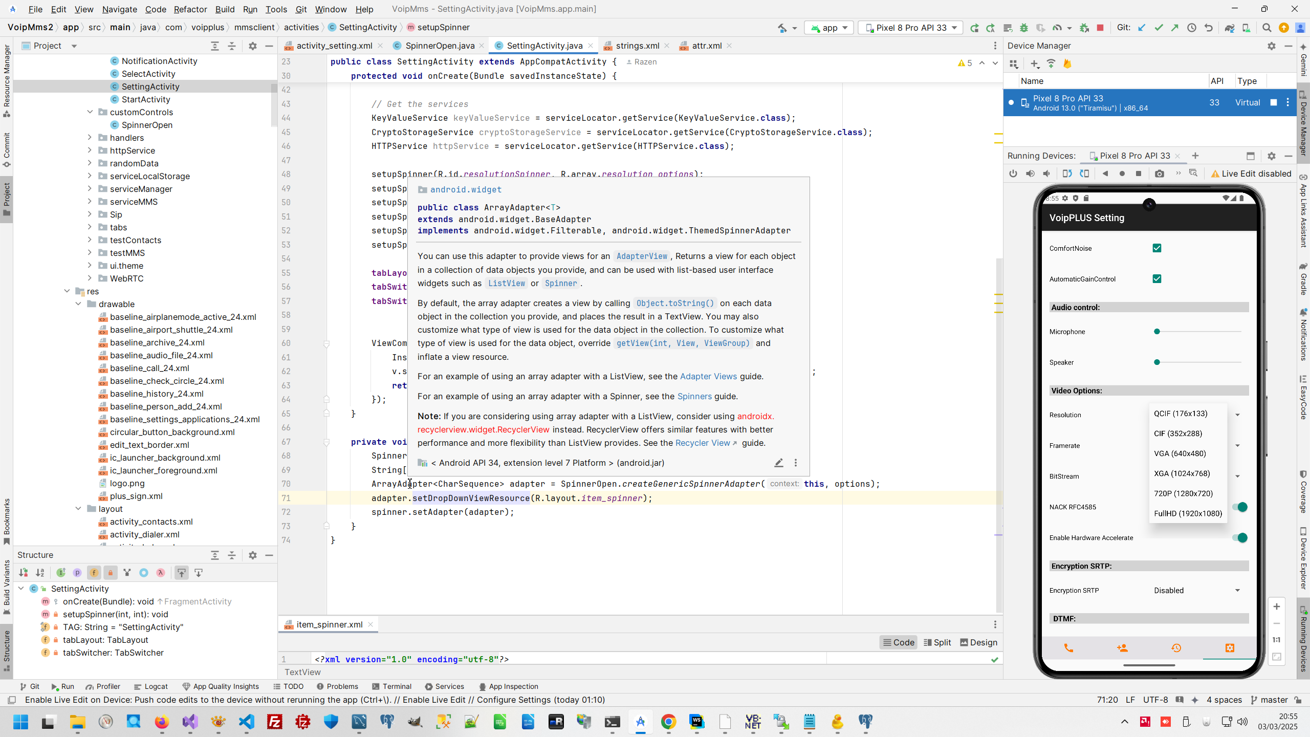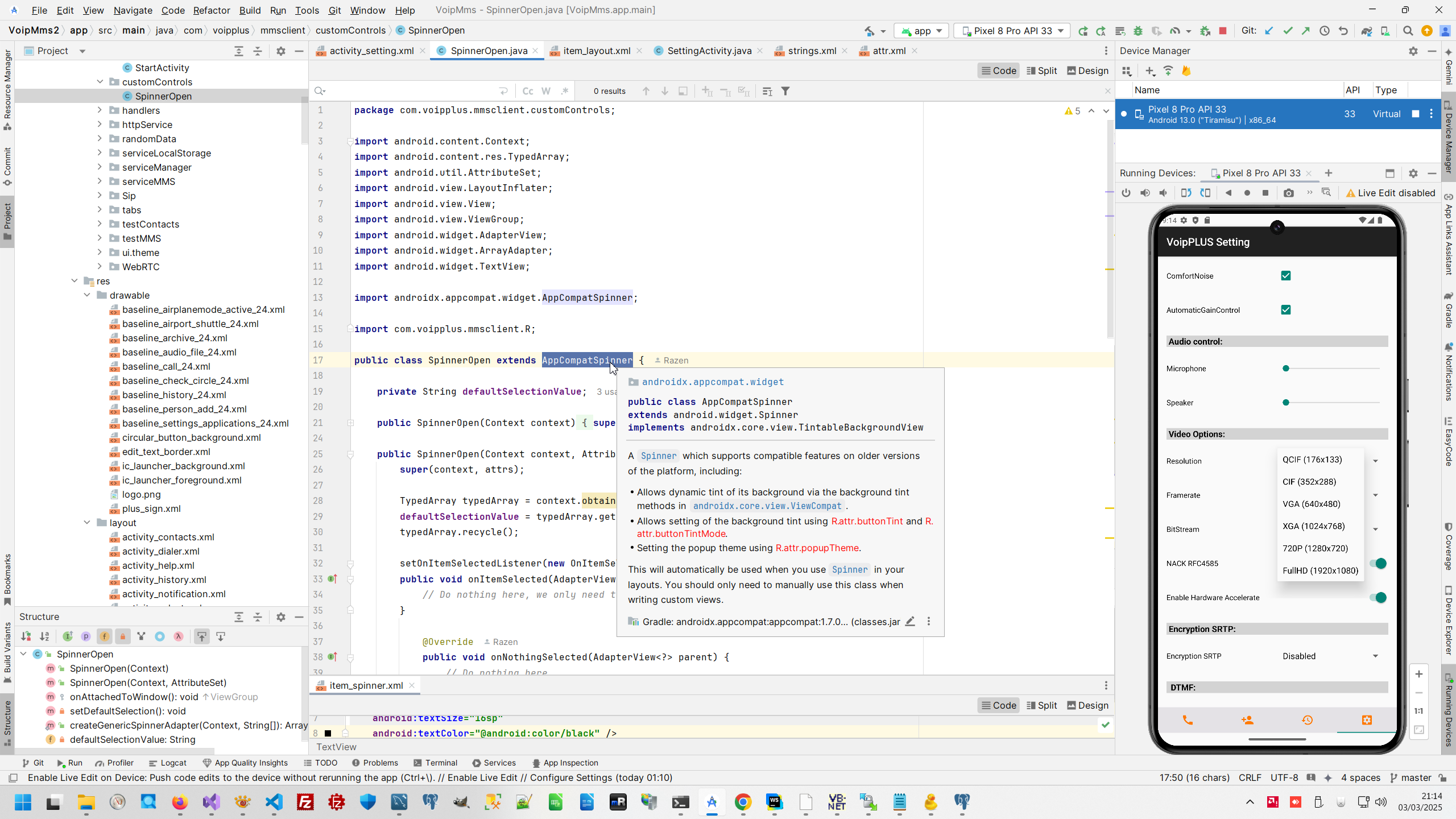- And last item of whole puzzle to create standard DropDownList in Android platform, as you can see, SpinnerOpen definition has additional styles SettingInput,that defined in separate style file.