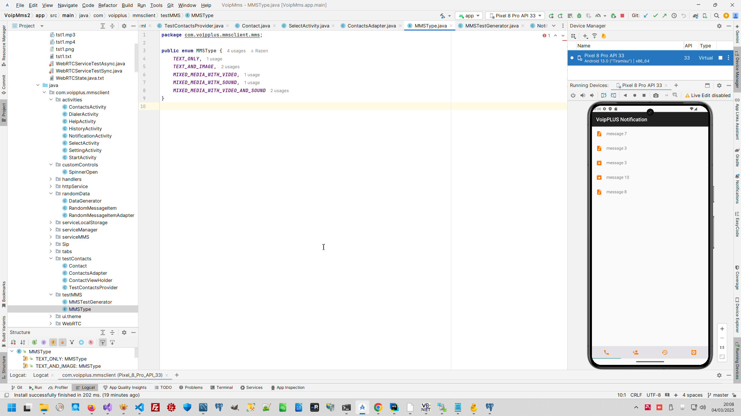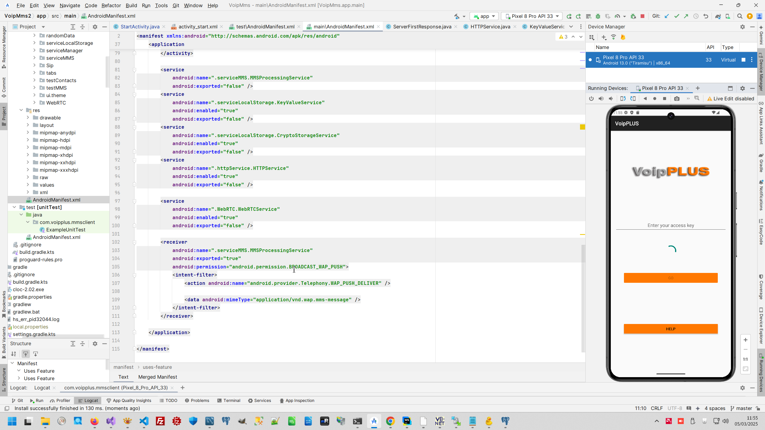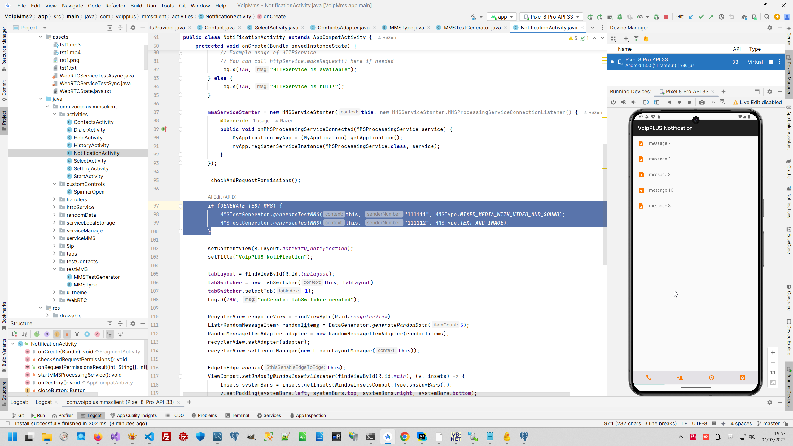 Main point to working with MMS is declared MMS-receiver in Manifest.