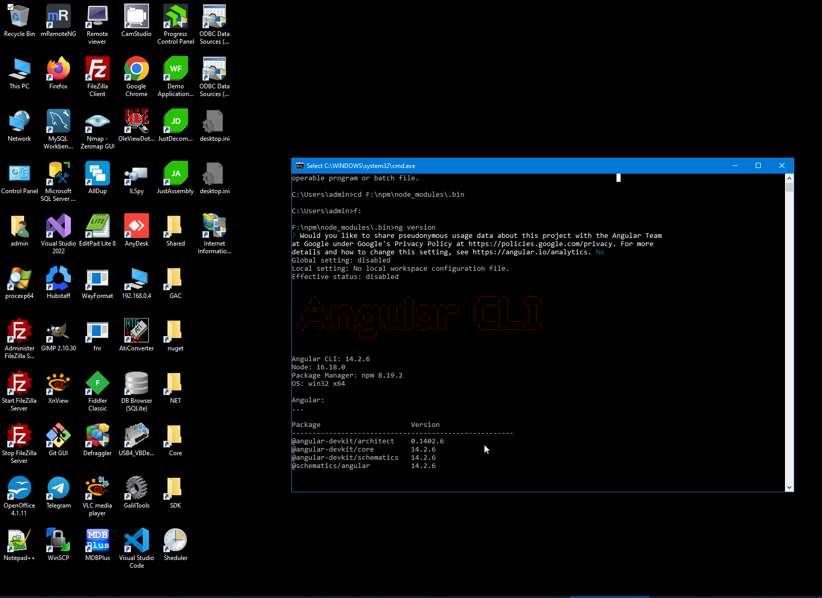 Next step is first attempt to open Angular Server (ng serve --open)