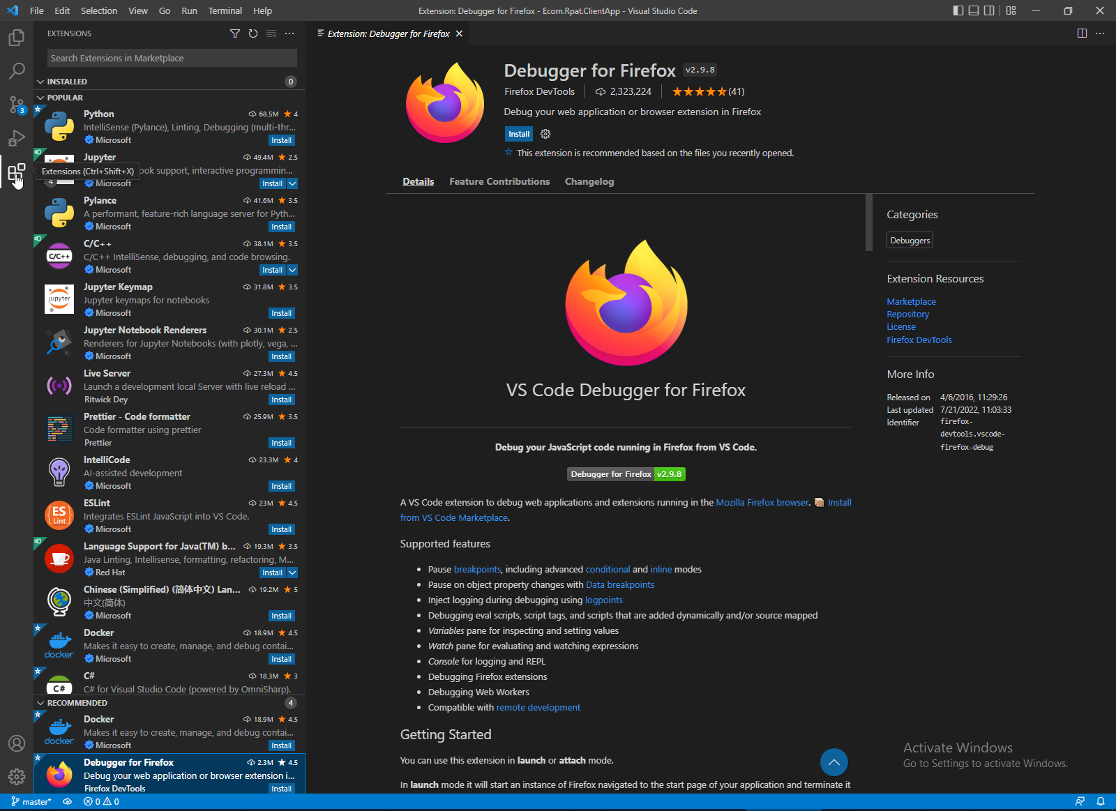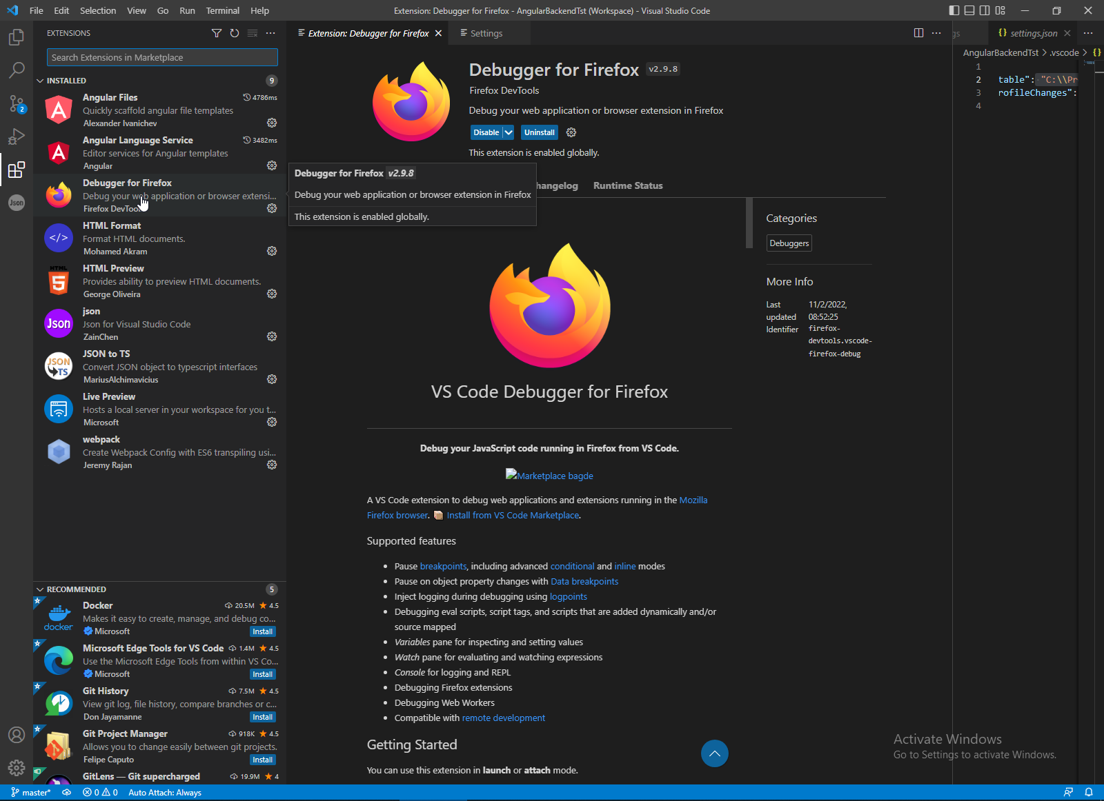 Next step is tune VS code to debugging Angular frontend. Firstly we can install Browser Remote control.