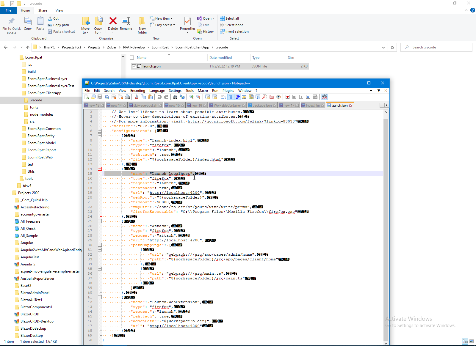 Next step is prepare launch.json to allow VS Code to launch project with remote browser control.
