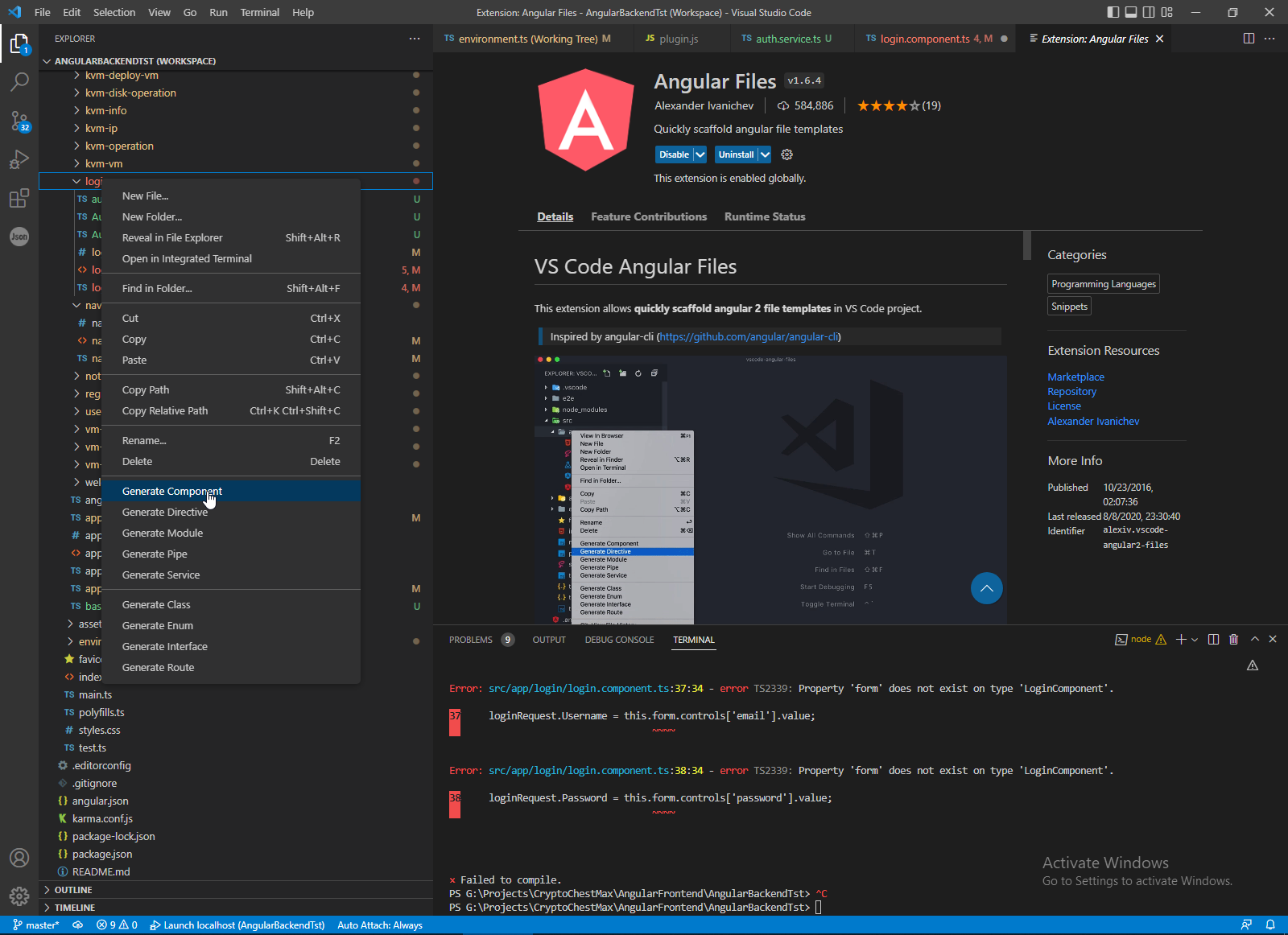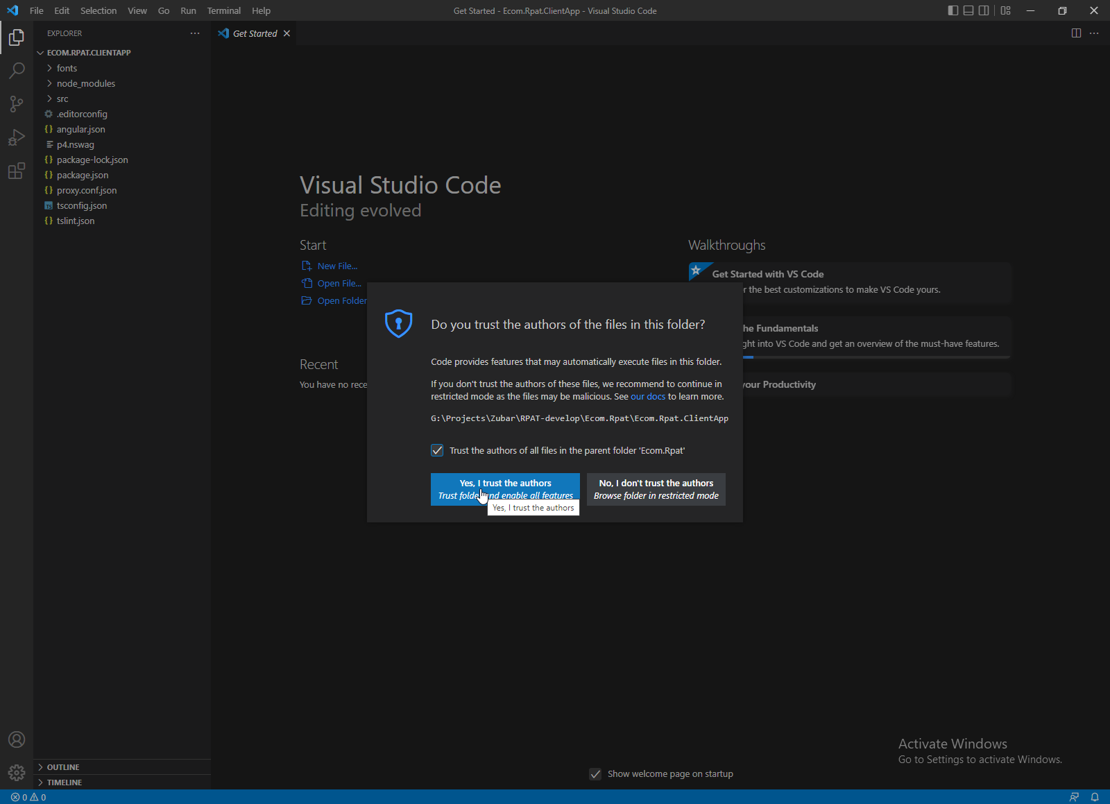 How to start Angular development in VS Code