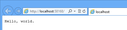 When you run the console application, the server starts listening to http://localhost:9000. If you navigate to this address in a web browser, you will see the “Hello world” page.