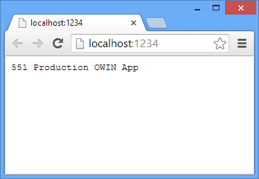 OwinHost honored the startup conventions listed above. 5. In the command window, press Enter to exit OwinHost. 6. In the ProductionStartup class, add the following OwinStartup attribute which specifies a friendly name of ProductionConfiguration.