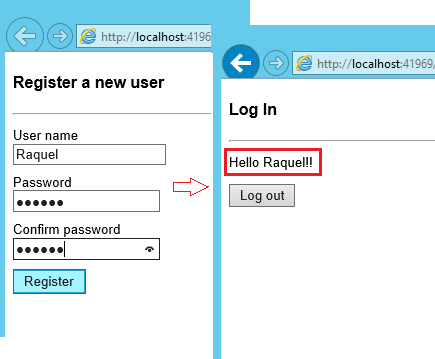 Press Ctrl + F5 to build and run the web application. Enter a new user name and password and then click on Register.