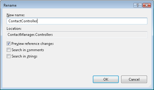 It might bother you that the name of our controller class for working with contacts is named the HomeController class. Shouldn t the controller be named ContactController?