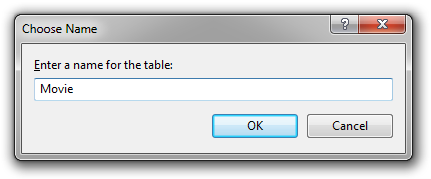 When you’ve got it done, click the Save icon in the toolbar or select File | Save from the menu, and name your table “Movie” (singular). We’ve got a database and a table!