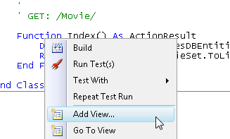 Right-click the Index() action and select the menu option Add View (see Figure 5).