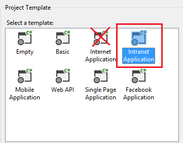 - Create a new ASP.NET MVC 4 Intranet Application and accept all the defaults. (It must be an In tra net and not In ter net project).
