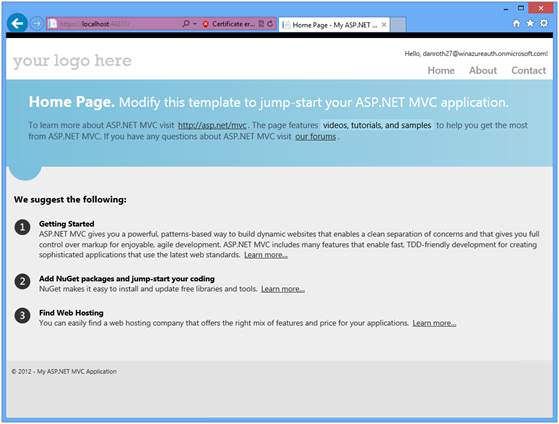 You have now successfully logged into your Azure hosted application using Windows Azure Authentication.