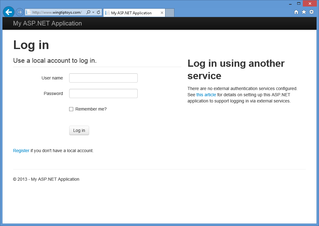 48: There are no external authentication services configured. See <a href="http://go.microsoft.com/fwlink/?LinkId=252166">this article</a>