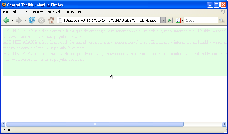 Then, add the AnimationExtender to the page, providing an ID, the TargetControlID attribute and the obligatory runat="server":