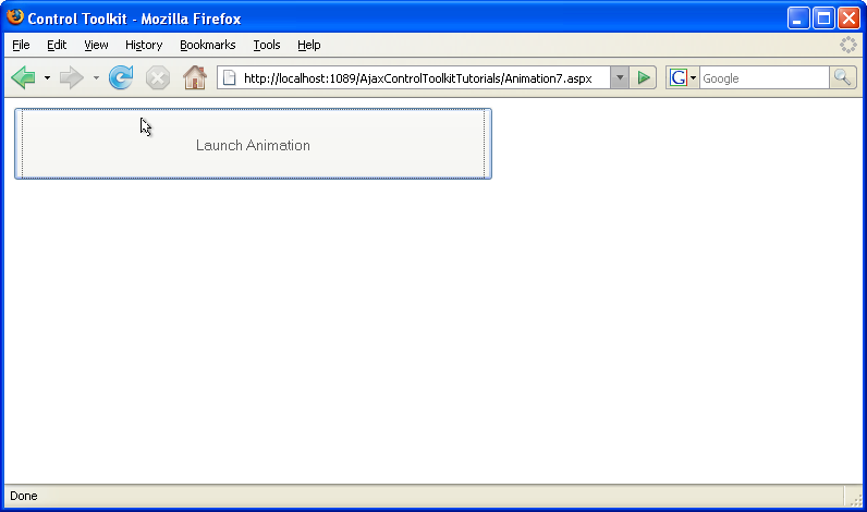 Note that an HTML Control is used instead of a Web Control since we do not want the button to create a postback; it shall just launch the client-side animation for us.