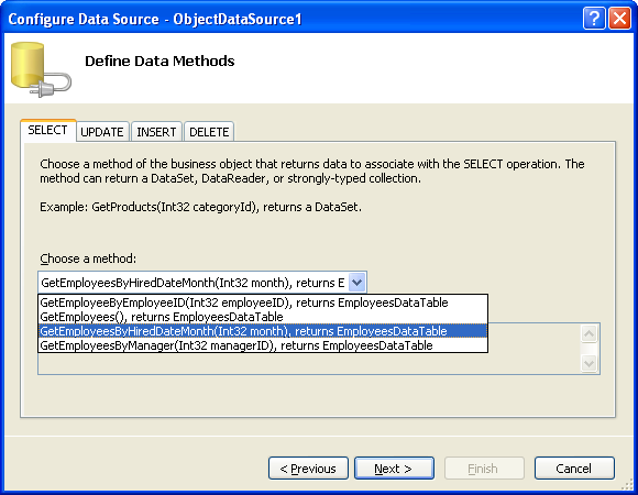 3: SelectMethod="GetEmployeesByHiredDateMonth" TypeName="EmployeesBLL">