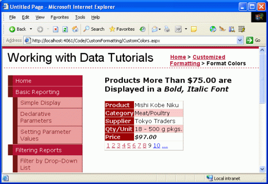 Then, in the DataBound event handler, set the cell’s CssClass property to ExpensivePriceEmphasis. The following code shows the DataBound event handler in its entirety:
