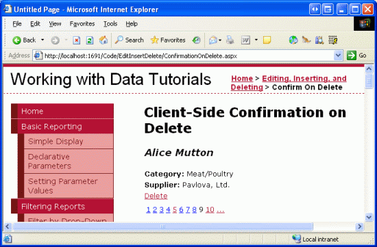 Adding the necessary client-side script differs slightly if using templates than when using a CommandField. Therefore, in this tutorial we will look at both a FormView and GridView example.