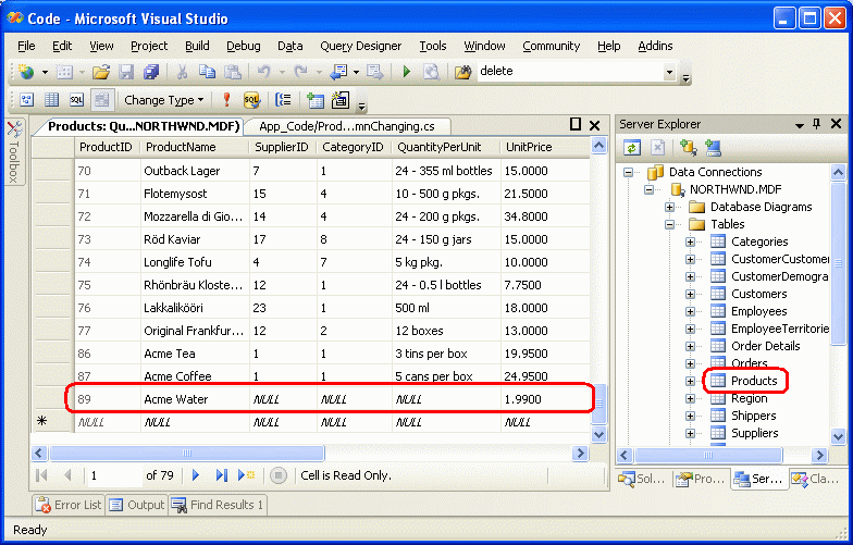 Figure 20: New Products Now Have Their CategoryID and SupplierID Values Set to 1 (Click to view full-size image)