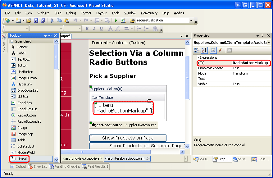 13: <asp:ObjectDataSource ID="SuppliersDataSource" runat="server"