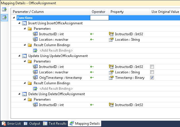 If you didn’t save the Timestamp value, the Entity Framework would not have it for the Where clause of the SQL Update command. Consequently nothing would be found to update. As a result, the Entity Framework would throw an optimistic concurrency exception every time an OfficeAssignment entity is updated.
