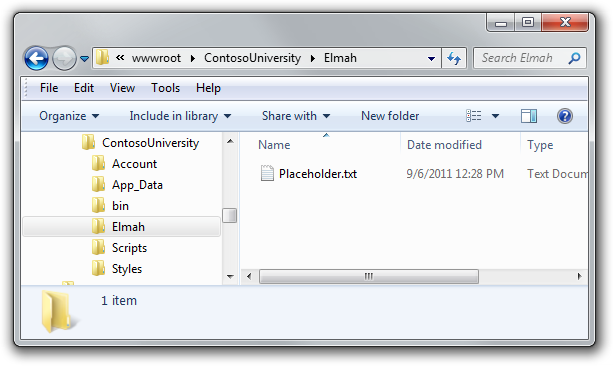 Verify that an Elmah folder exists with only the placeholder file in it.