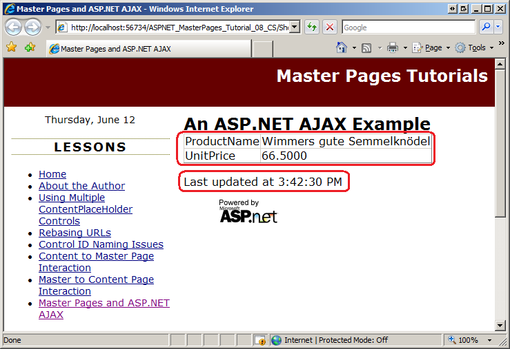 Step 2: Using the ASP.NET AJAX Framework from a Content Page
