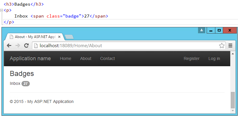Badges refer to small, usually numeric callouts next to a navigation item. They can indicate a number of messages or notifications waiting, or the presence of updates. Specifying such badges is as simple as adding a containing the text, with a class of “badge”: