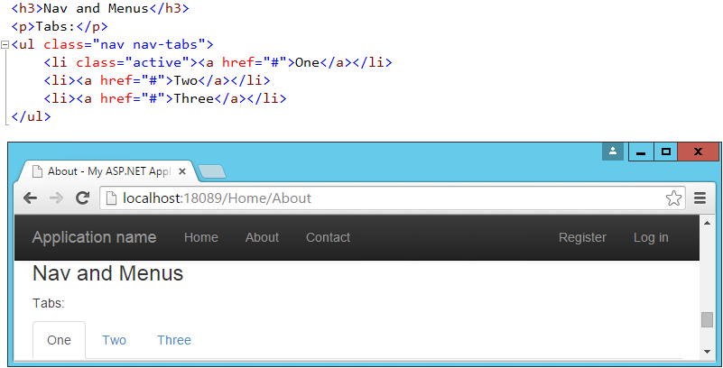 Our layout already includes a standard navbar, but the Bootstrap theme supports additional styling options. We can also easily opt to display the navbar vertically rather than horizontally if that’s preferred, as well as adding sub-navigation items in flyout menus. Simple navigation menus, like tab strips, are built on top ofelements. These can be created very simply by just providing them with the CSS classes “nav” and “nav-tabs”: