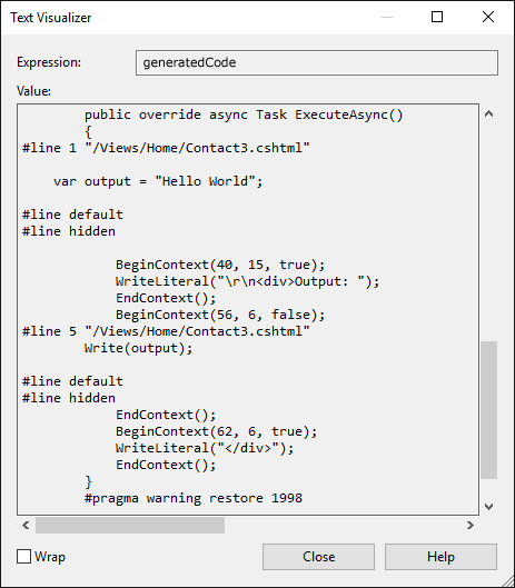 Viewing the Razor C# class generated for a view