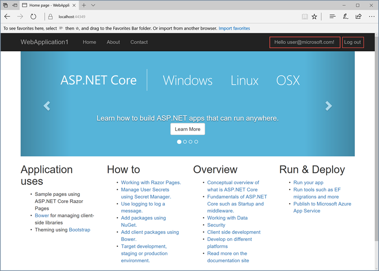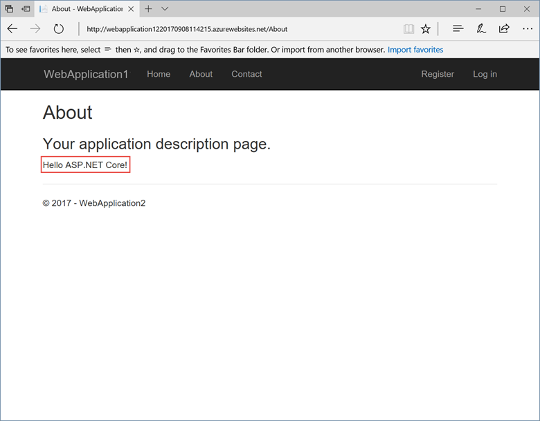 Edit the Pages/About.cshtml Razor page and change its contents. For example, you can modify the paragraph to say “Hello ASP.NET Core!”: