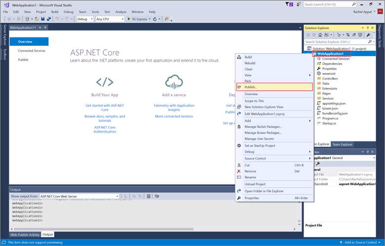 Publish an ASP.NET Core web app to Azure App Service using Visual Studio