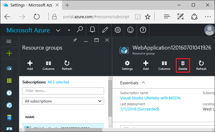 When you have finished testing the app, go to the Azure portal and delete the app.