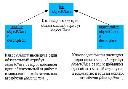 Формальное определение иерархии классов объектов, атрибутов и их синтаксиса называется схемой Справочника. Схема как раз и является тем самым структурированным информационным каркасом, который допускает локальные расширения. В принципе, любой системный администратор может составлять собственные схемы под свои нужды, однако, если мы хотим получить действительно глобальную информационную службу, необходима унификация схем. Именно эта потребность вызвала появление на свет документов, определяющих стандартные схемы. Например, схема, служащая для поддержки функционирования самой службы X.500, определена в рекомендациях X.521, схема для поддержки почты X.400 описана в X.402. Кроме того, в документе RFC1274 определены еще две схемы, весьма полезные для глобального Справочника, – COSINE и Internet X.500, а также четко описан механизм изменения существующих и добавления новых стандартных схем, когда в этом назревает необходимость.