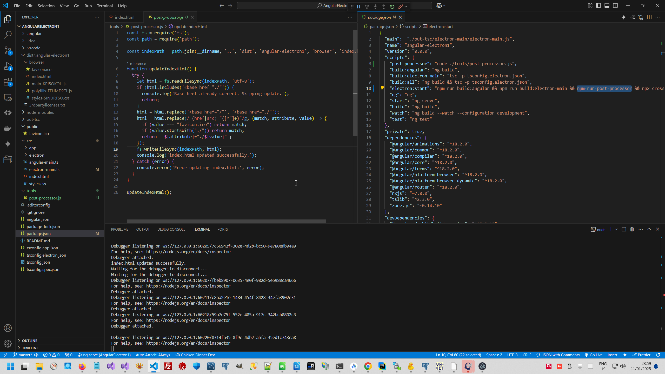 "electron:start": "npm run build:angular && npm run build:electron-main && npm run post-processor && npx cross-env NODE_ENV=development electron .",