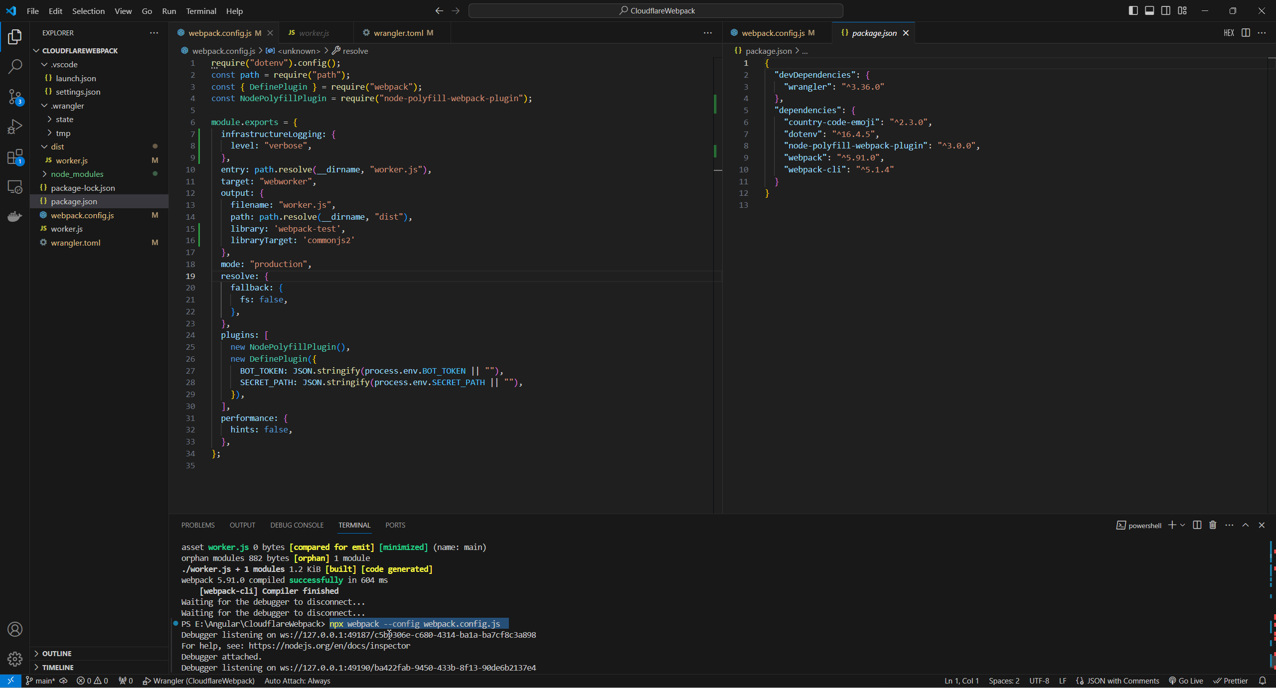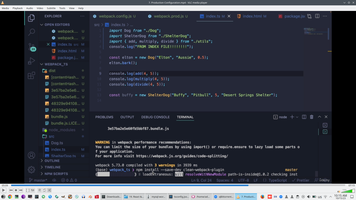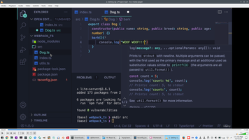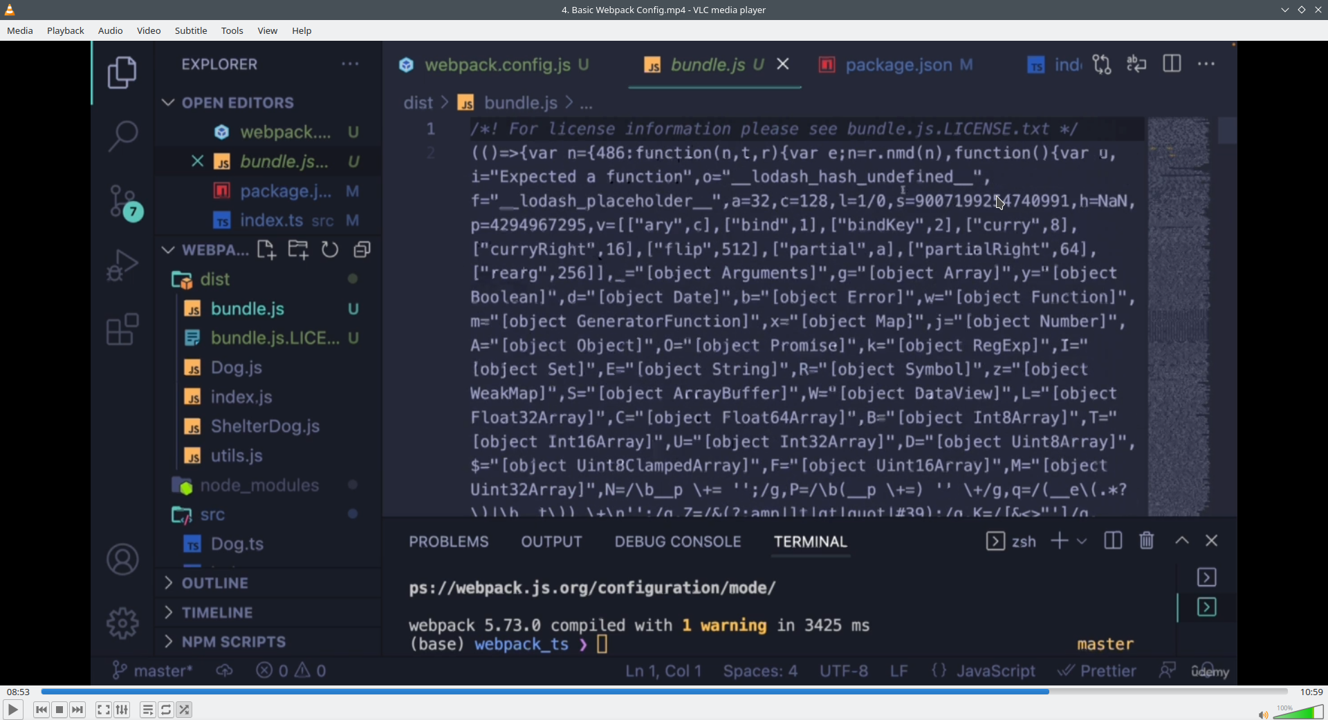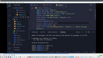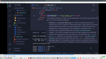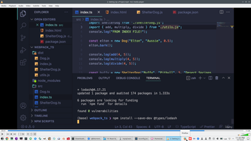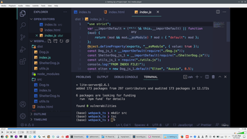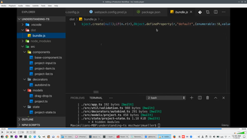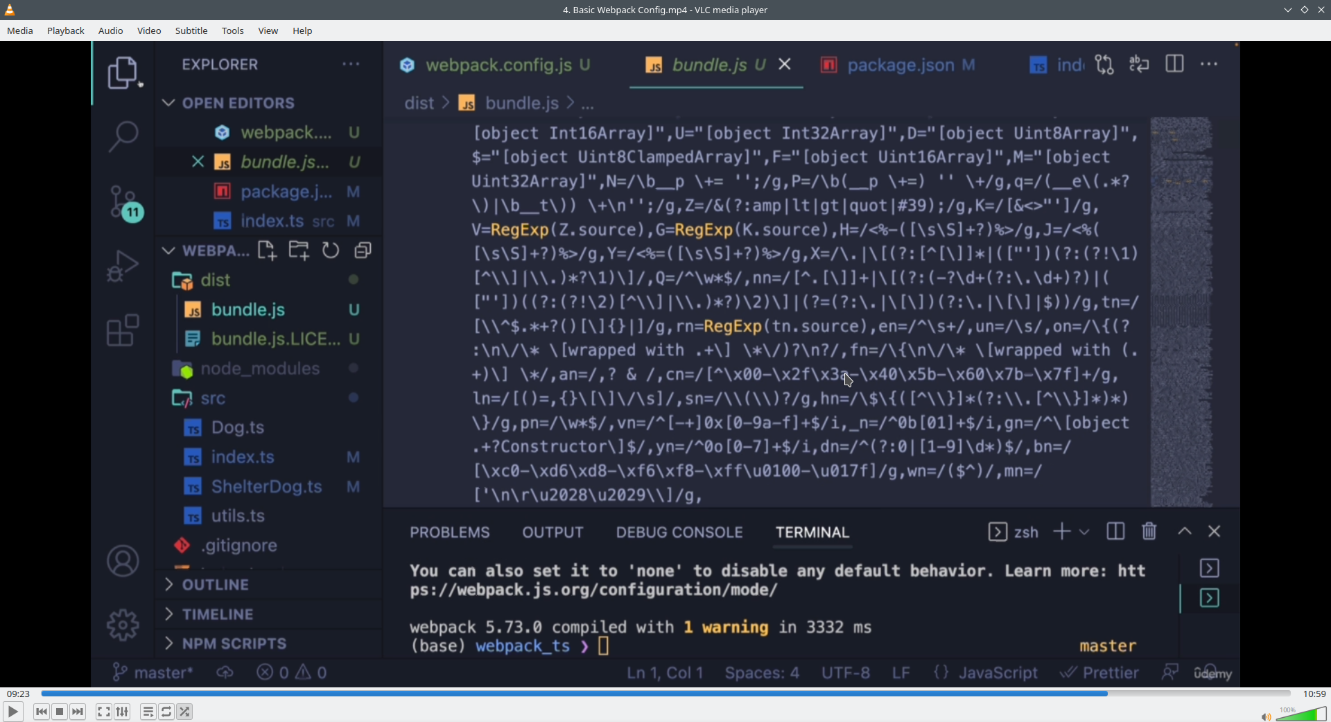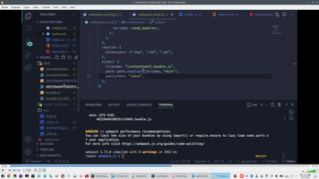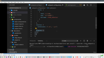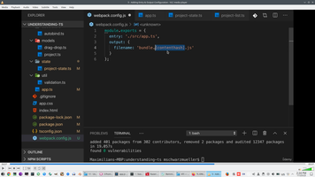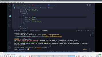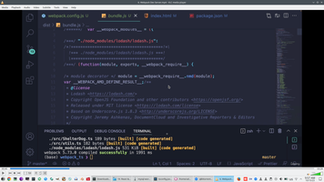 I like Webpack, I use it in many my projects. This is small example, on screen below you can see my webpack.config.js, packages I used in that project, source code and target code after Webpack.