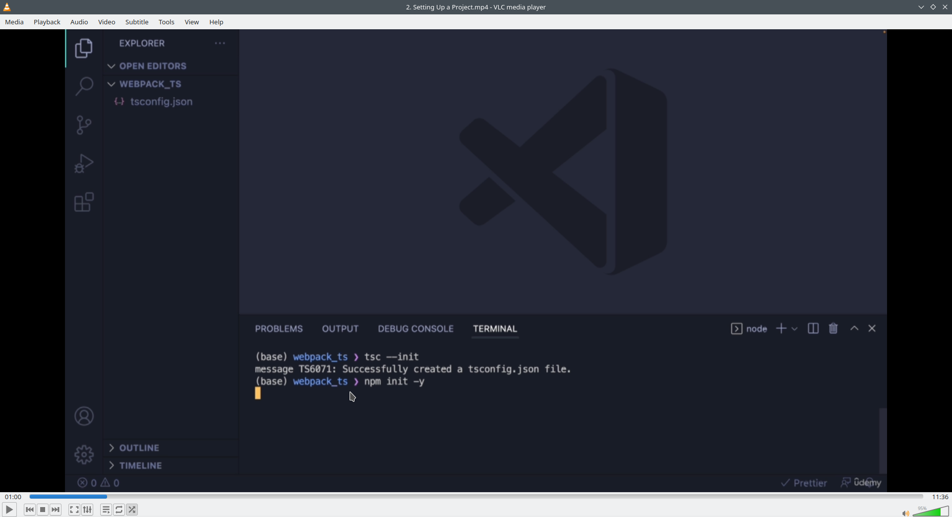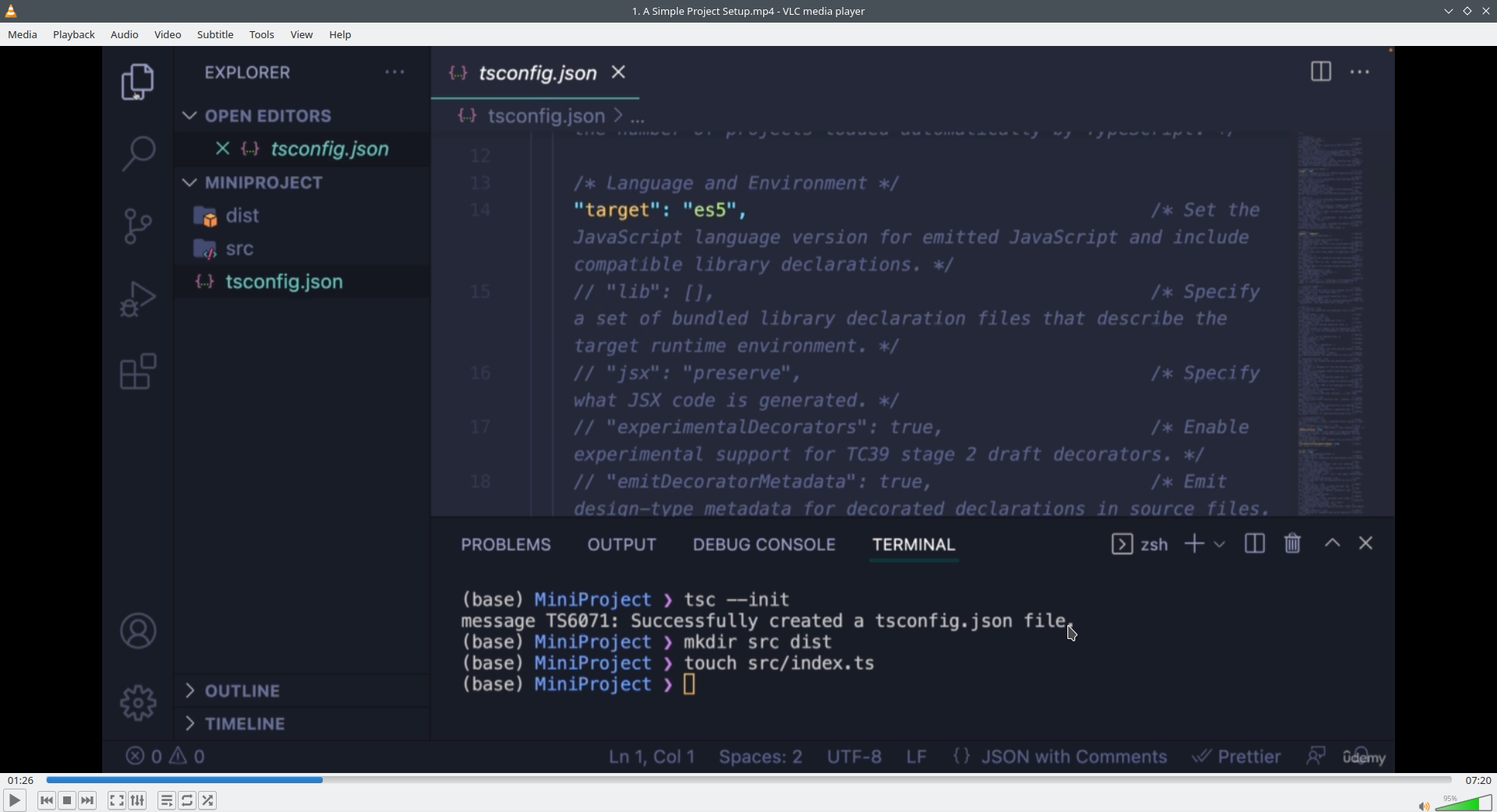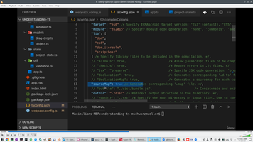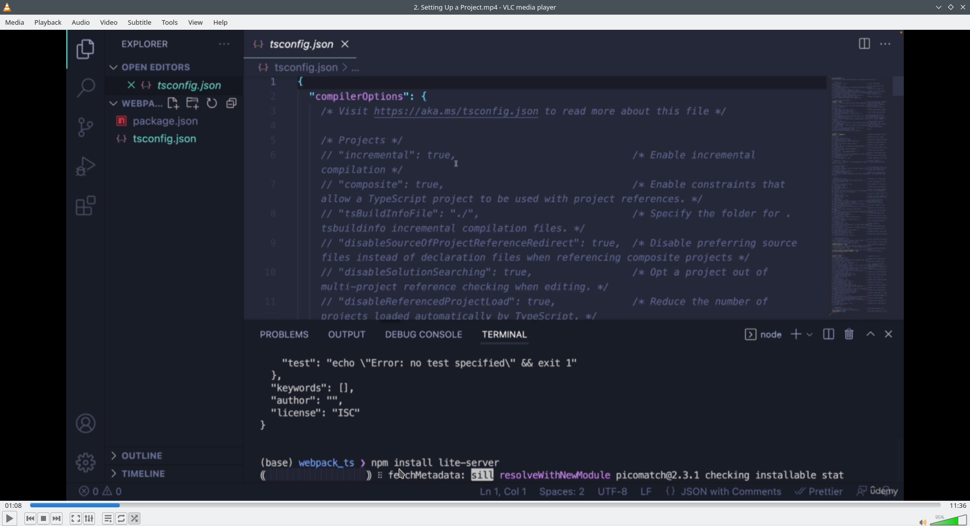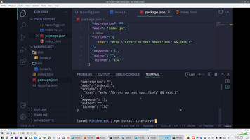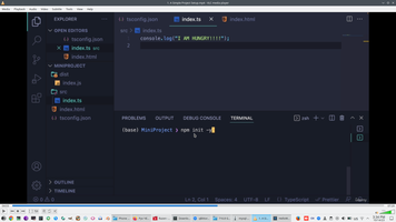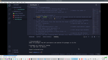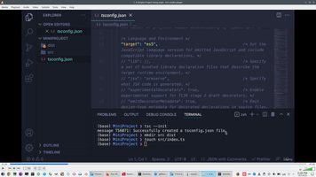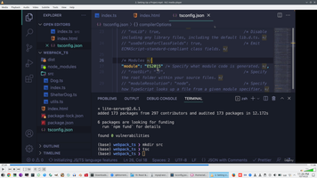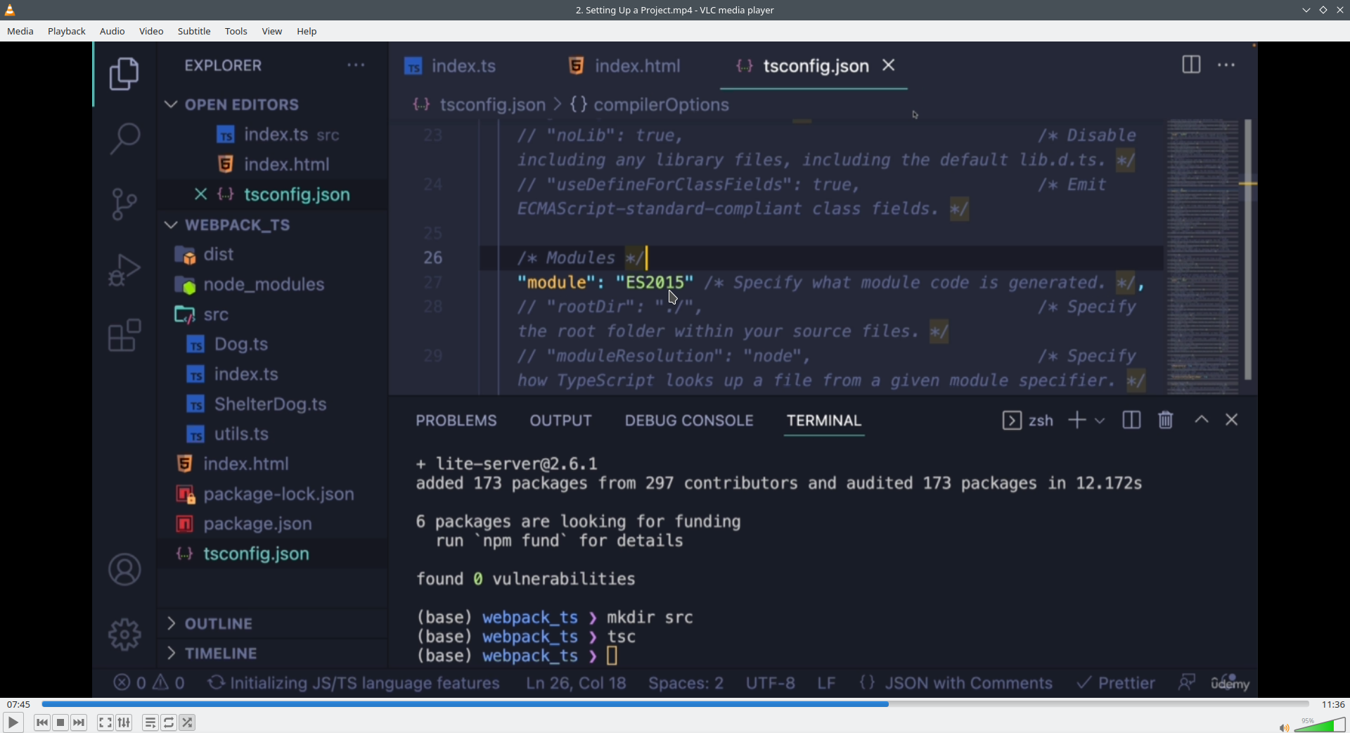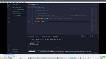 Initialize typescript compiler "tsc --init", create "tsconfig.json"