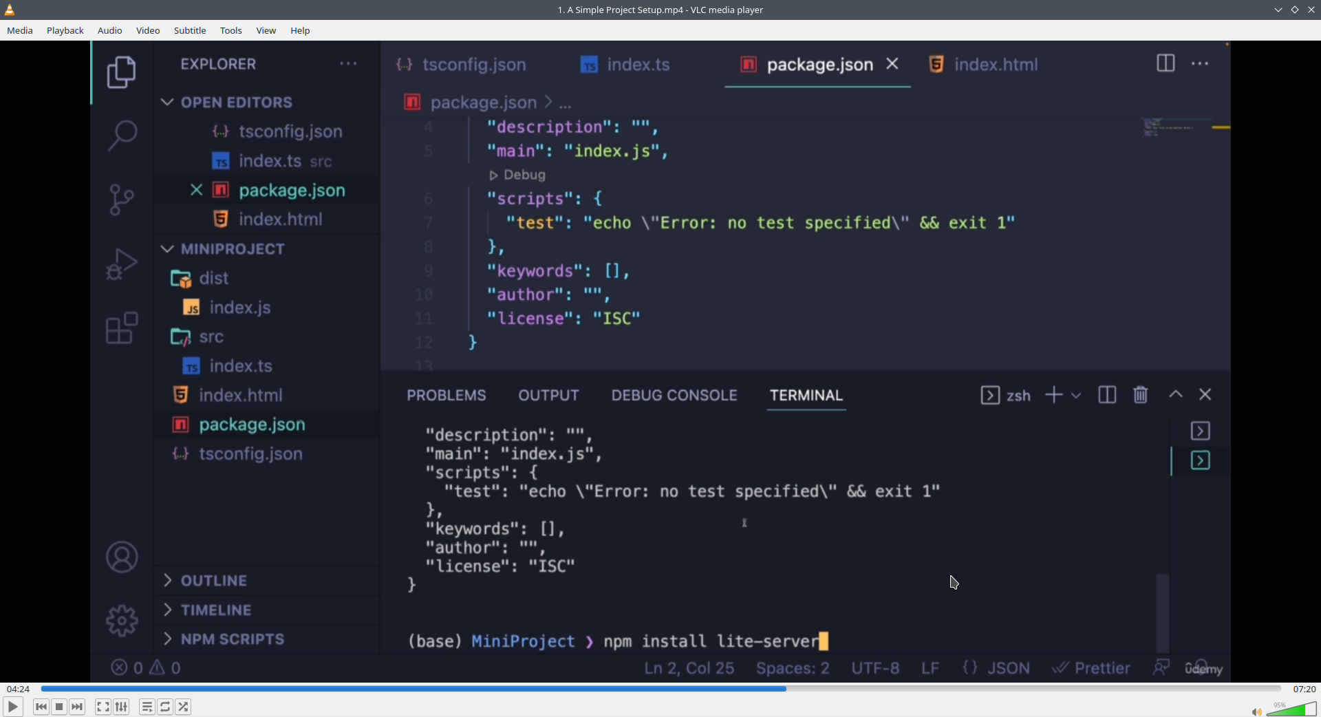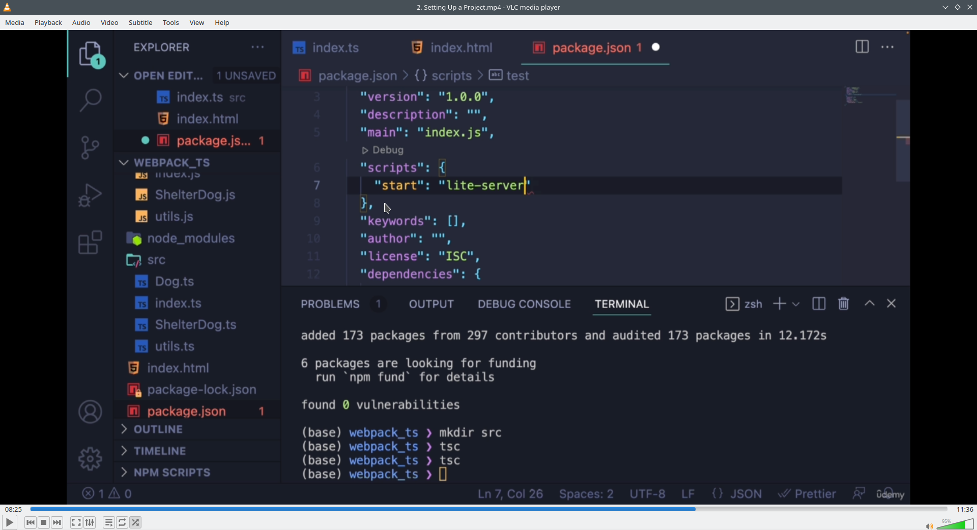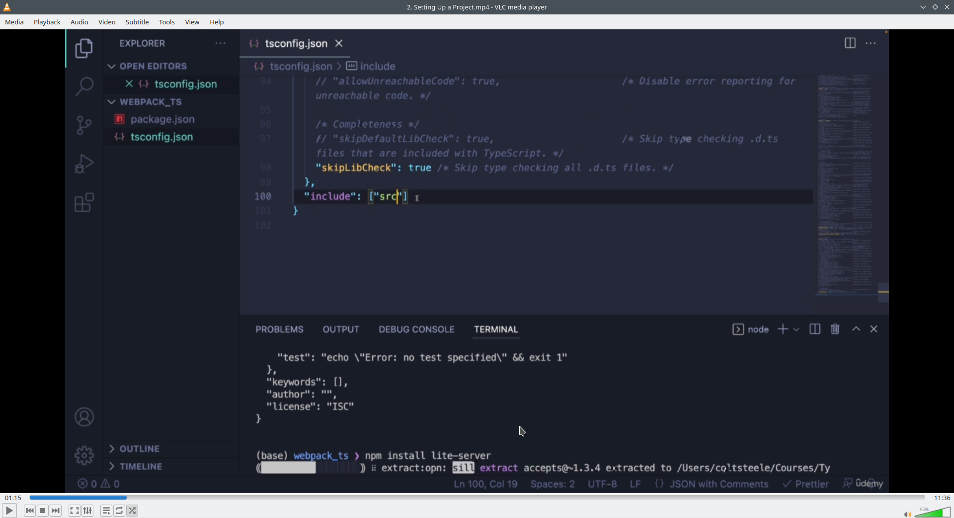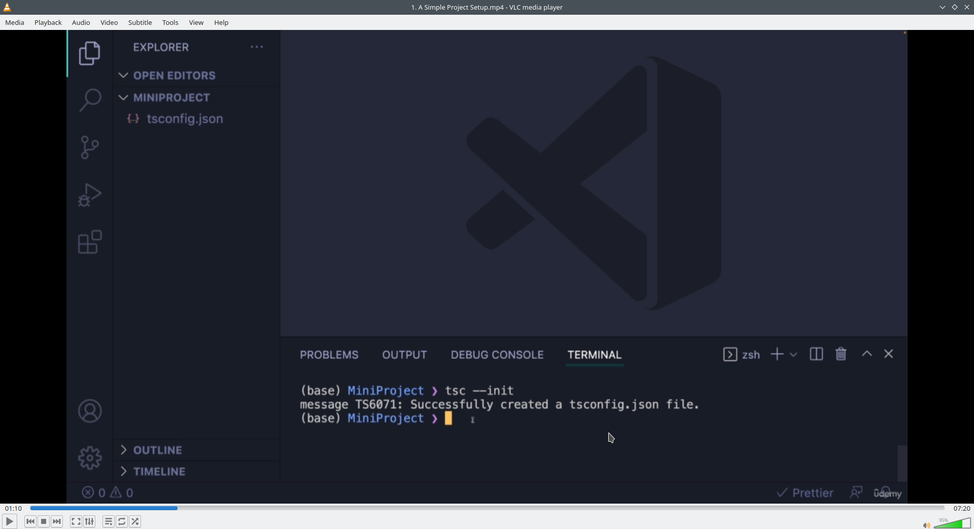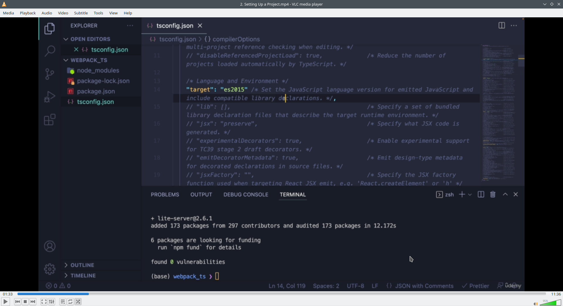 Initialize typescript compiler "tsc --init", create "tsconfig.json"