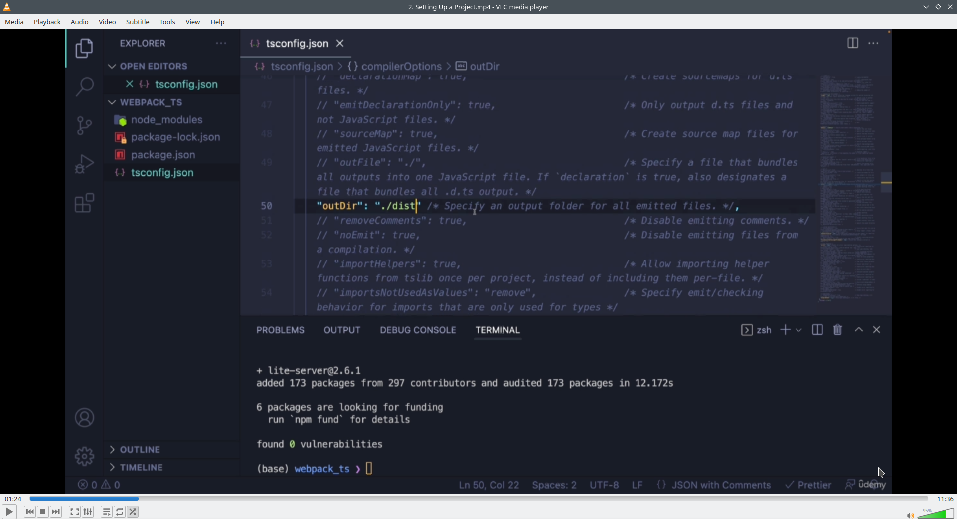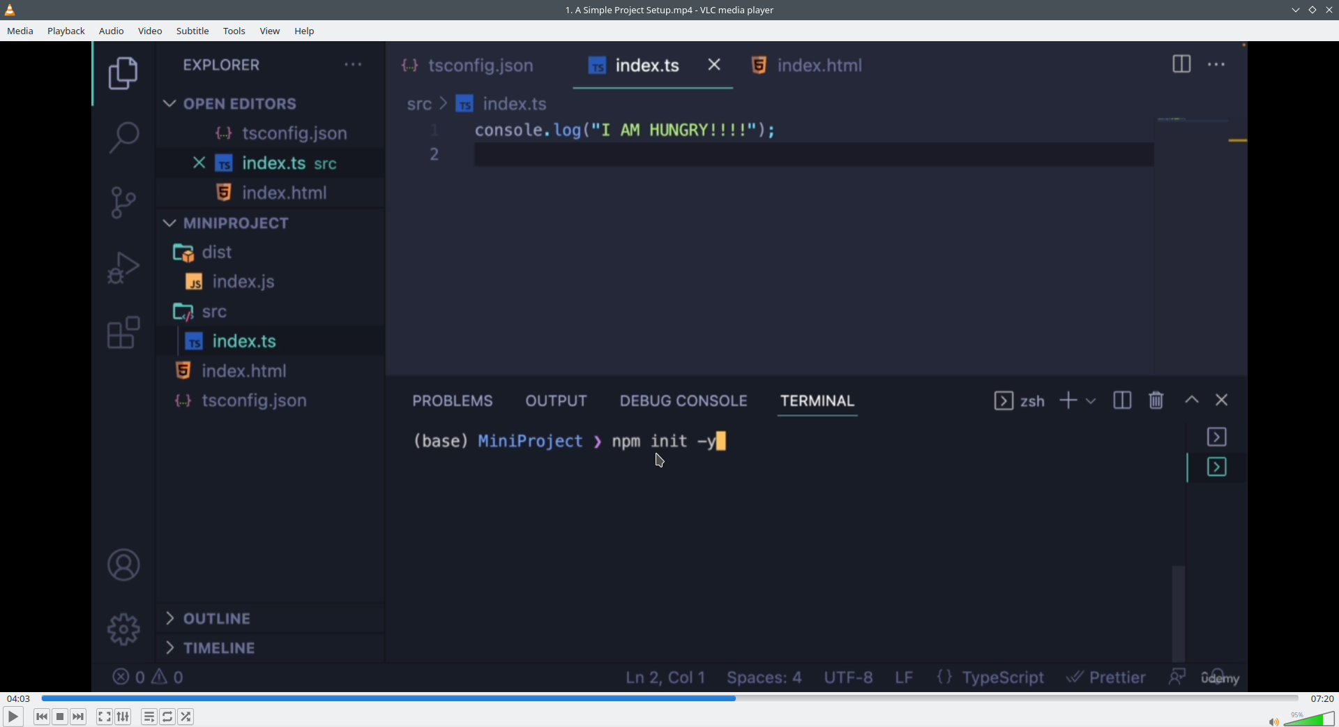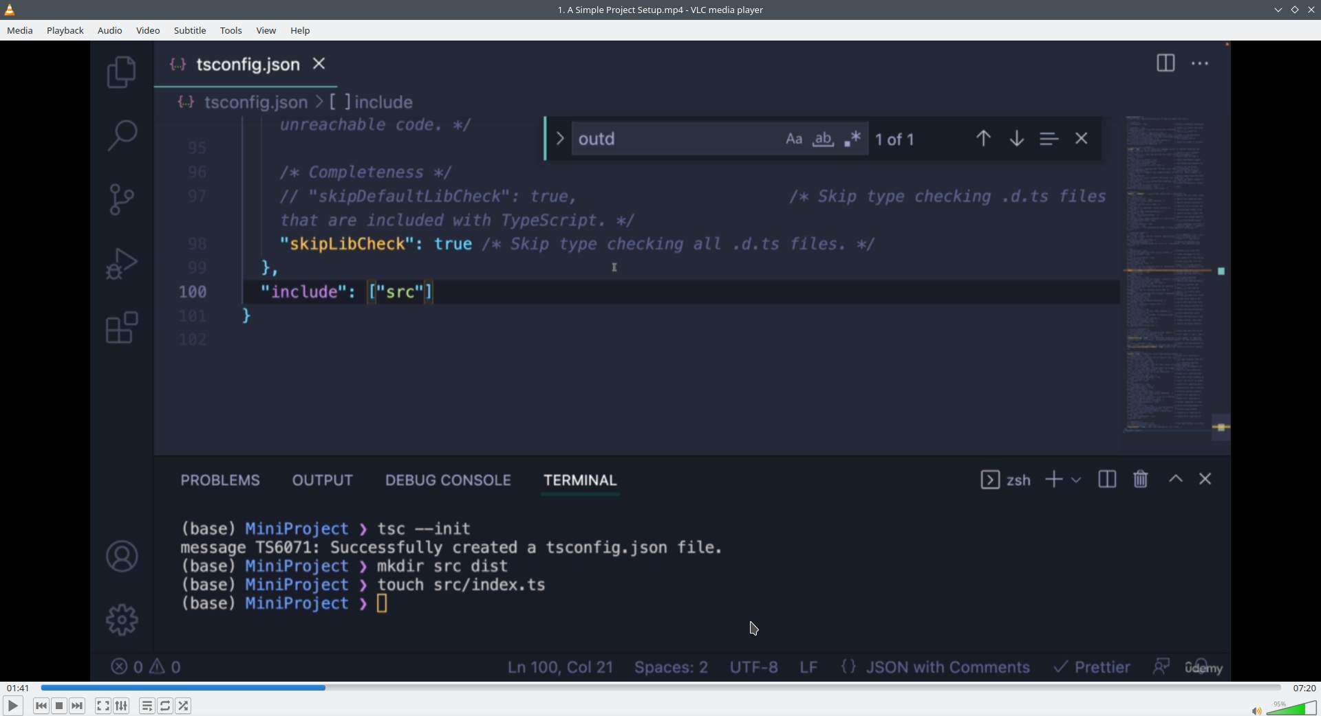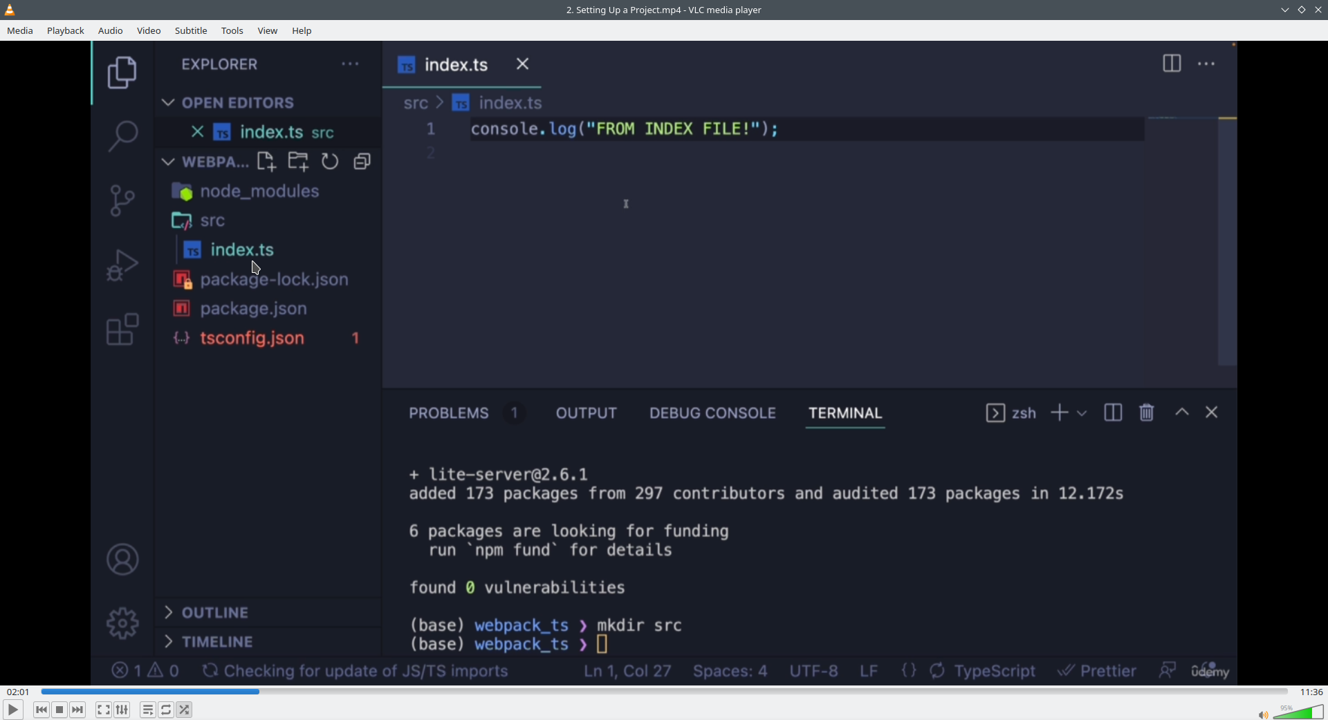 Initialize typescript compiler "tsc --init", create "tsconfig.json"