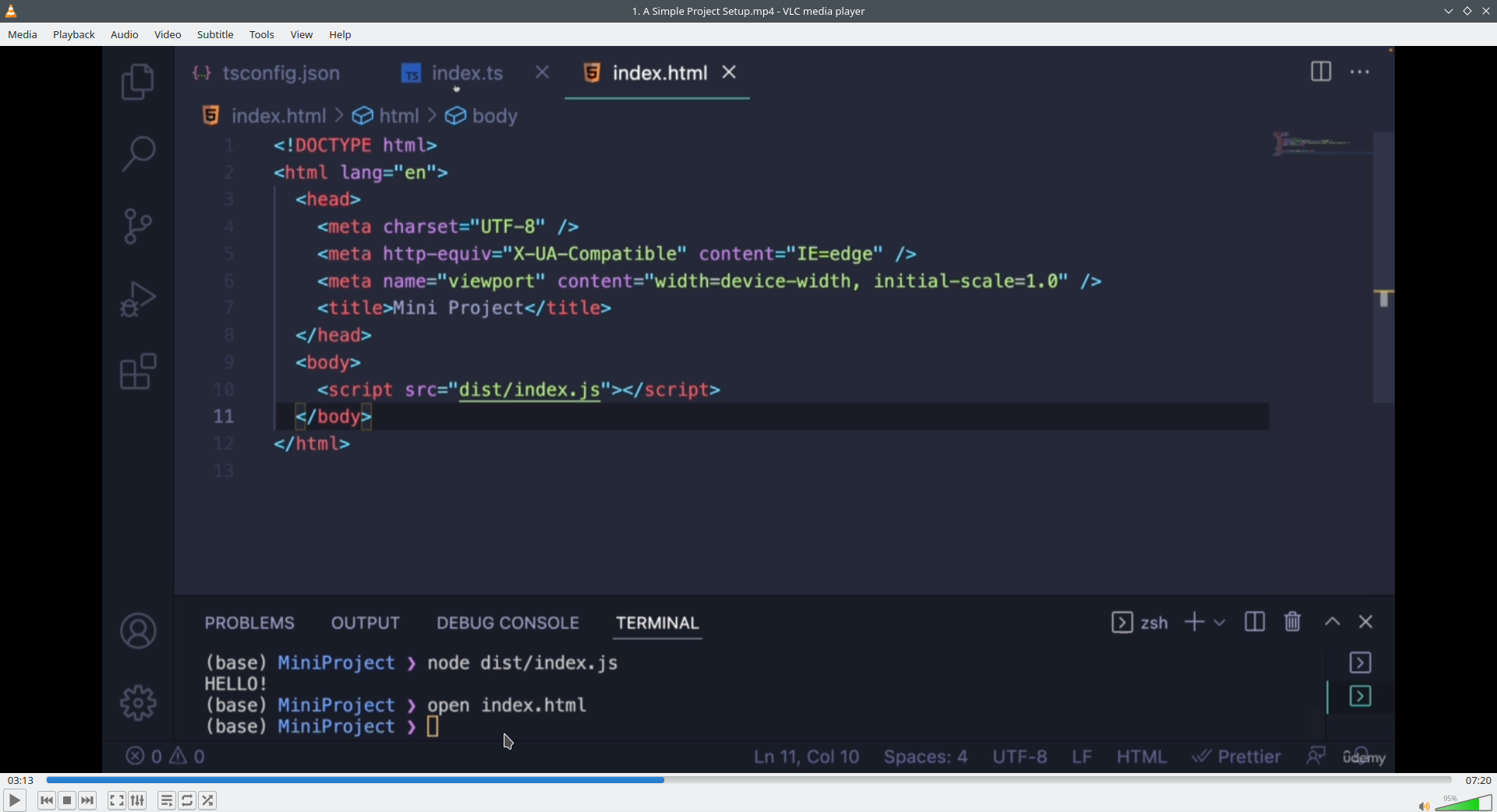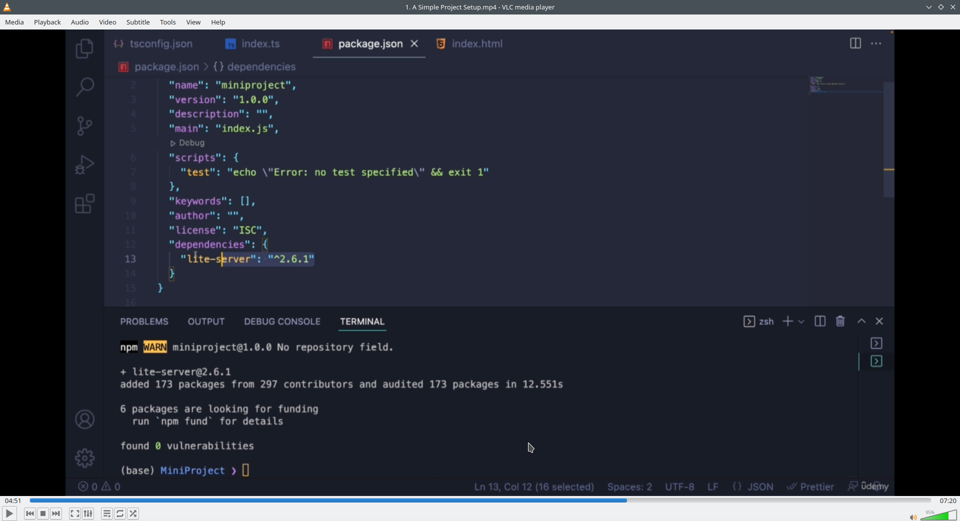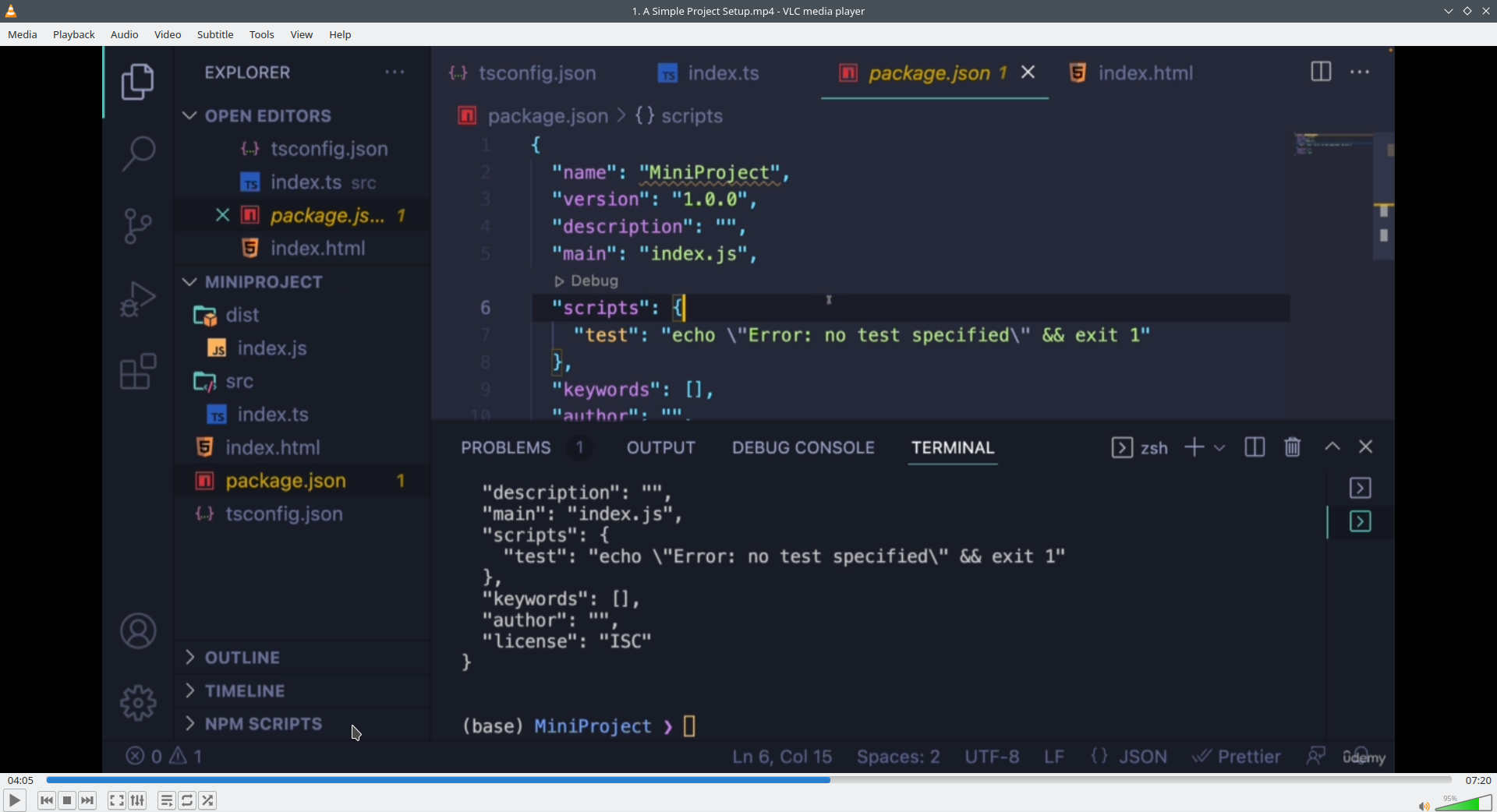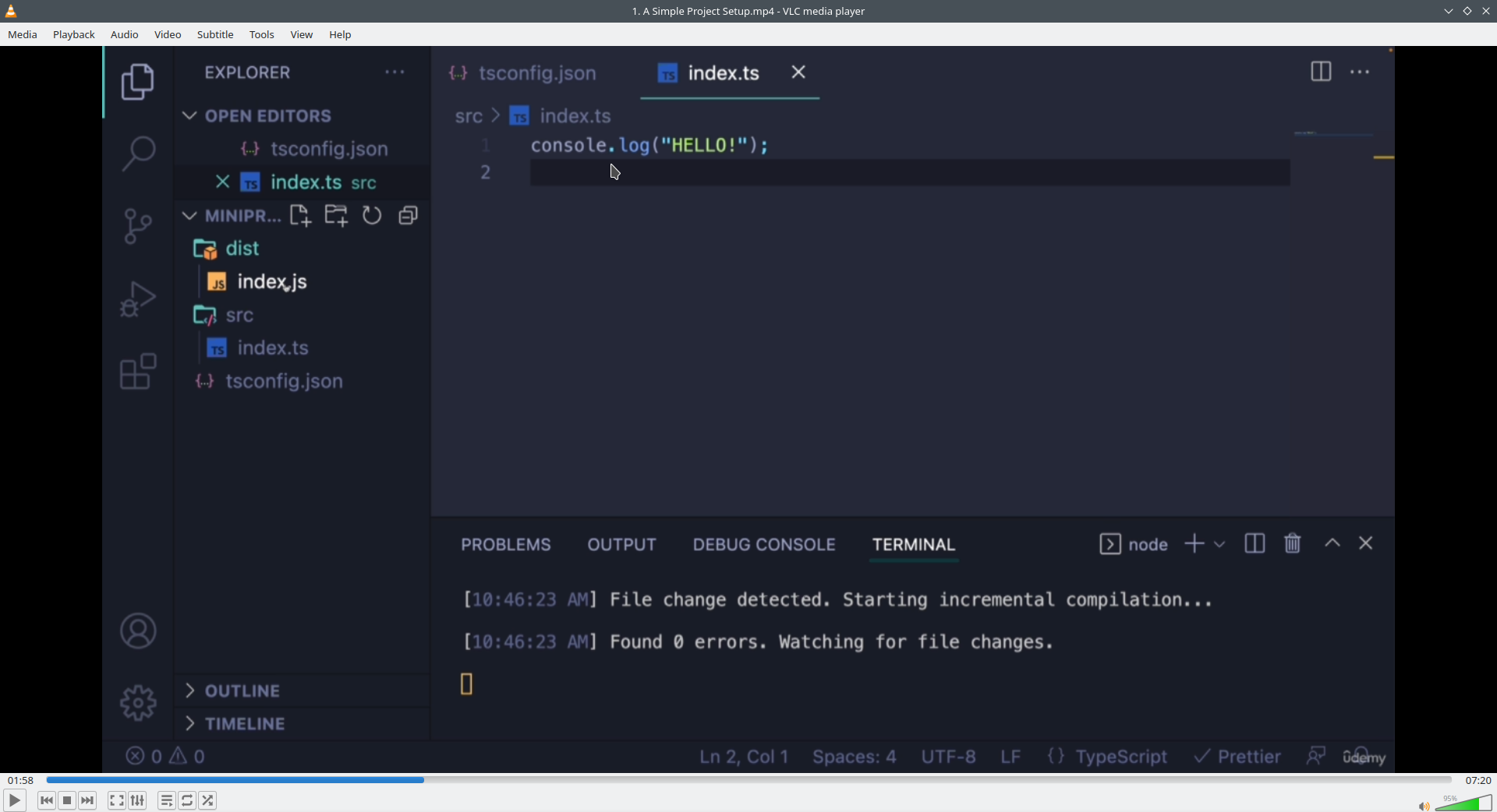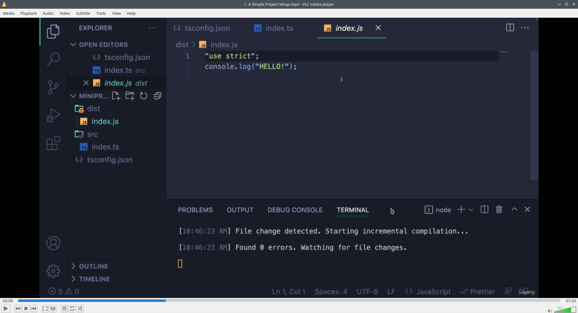 Initialize typescript compiler "tsc --init", create "tsconfig.json"