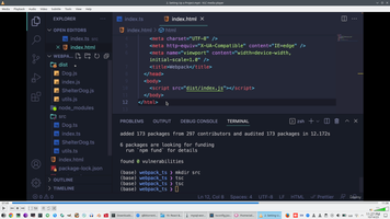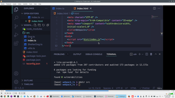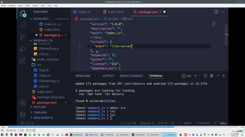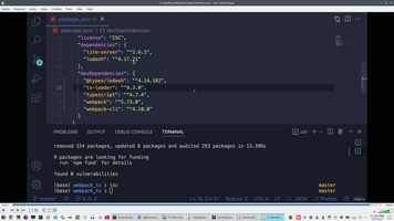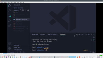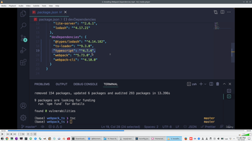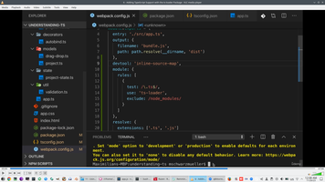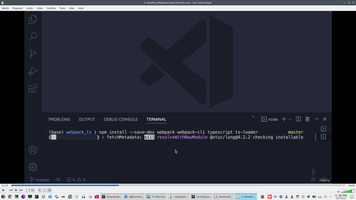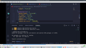 Install Webpack, webpack-cli, typescript, ts-loader. All need to install locally '--save-dev' to store current Typescript version to future development.